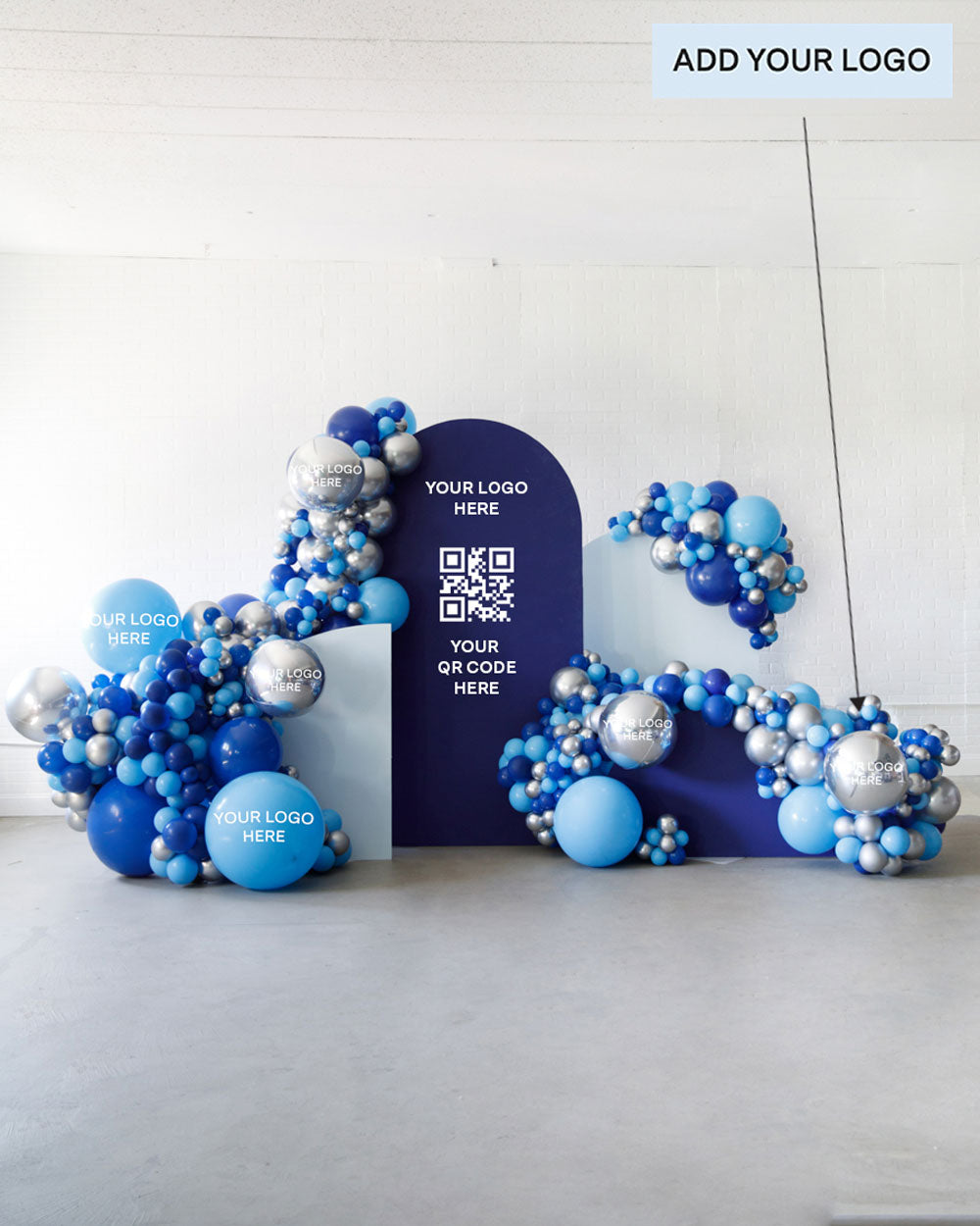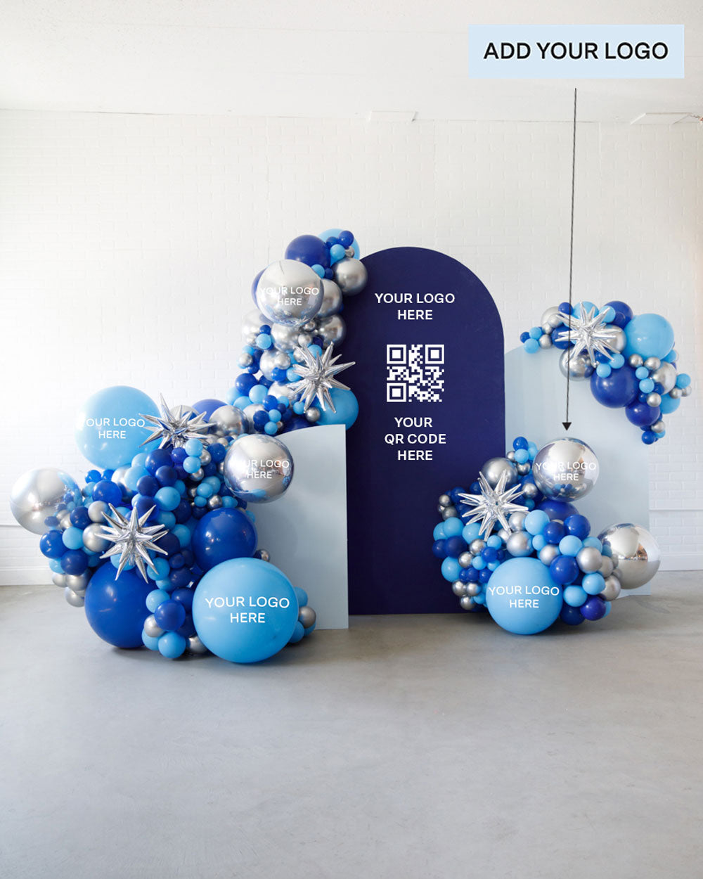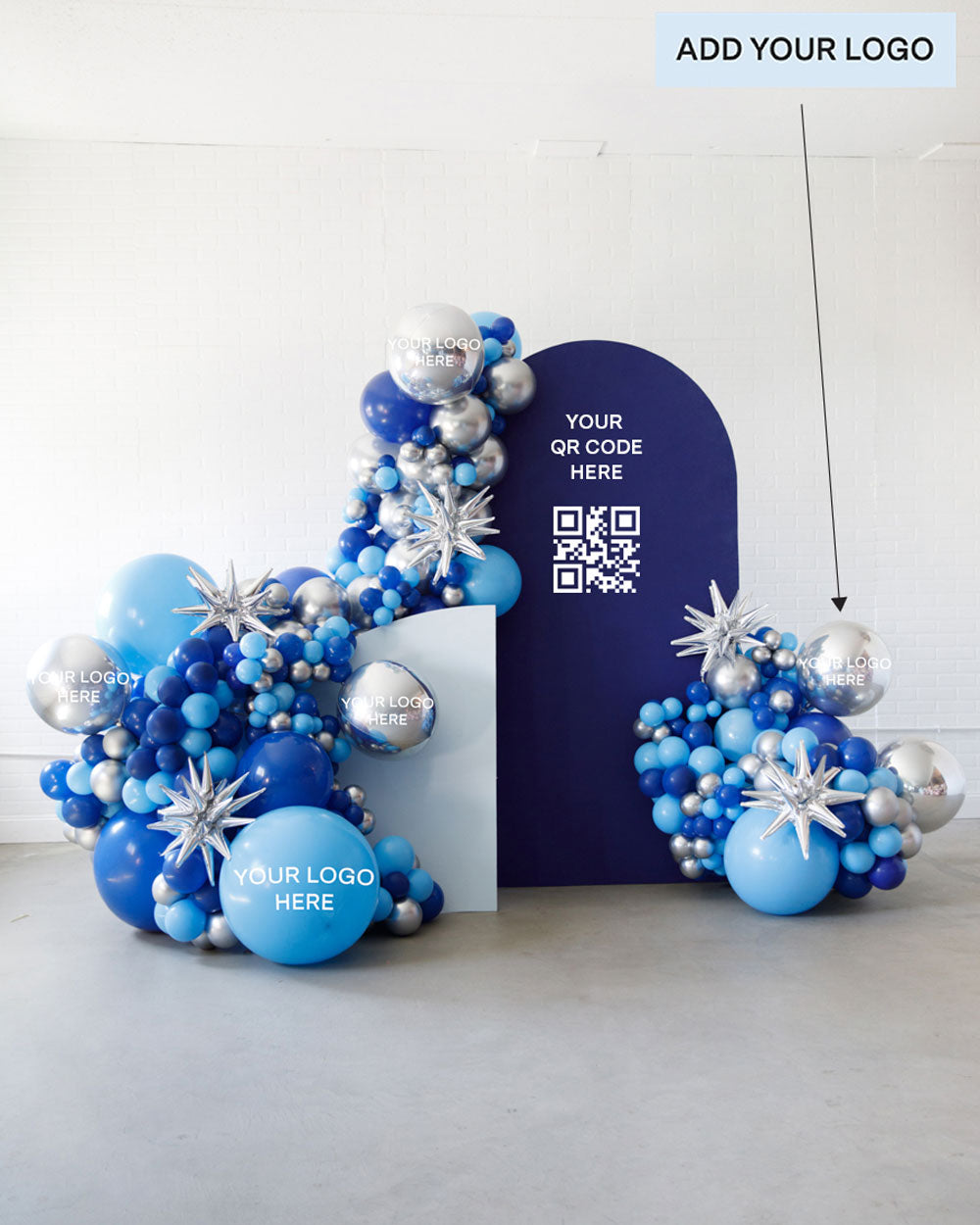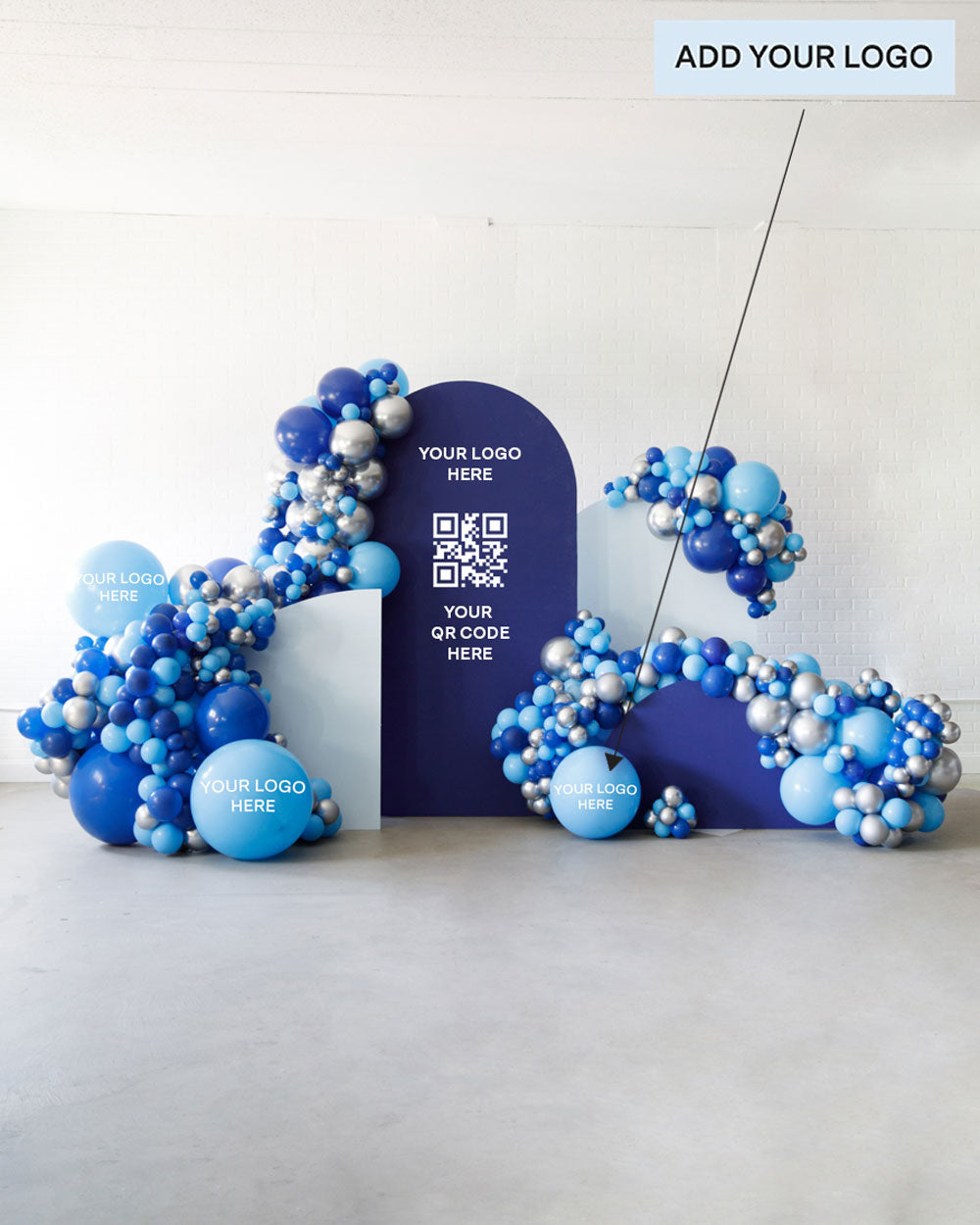 Make a sophisticated moment at your event with this panel and garland set! With an organic balloon garland and two panels, you enjoy your well decorated event. Additional foils and stars can bring more glam to the look. Pick your brand colors and add your logo to the panel or balloons for an extra presence.