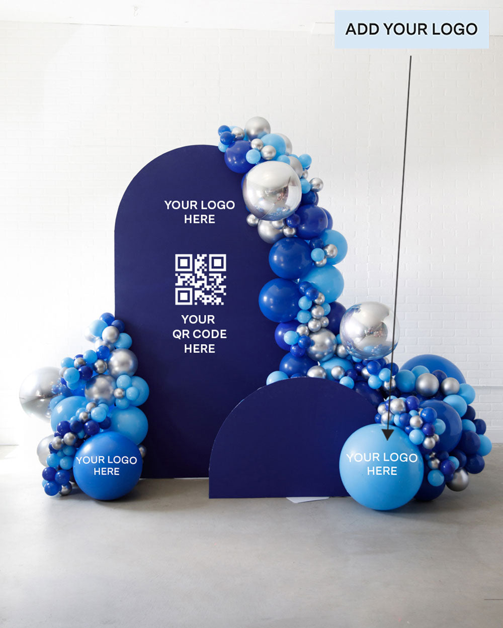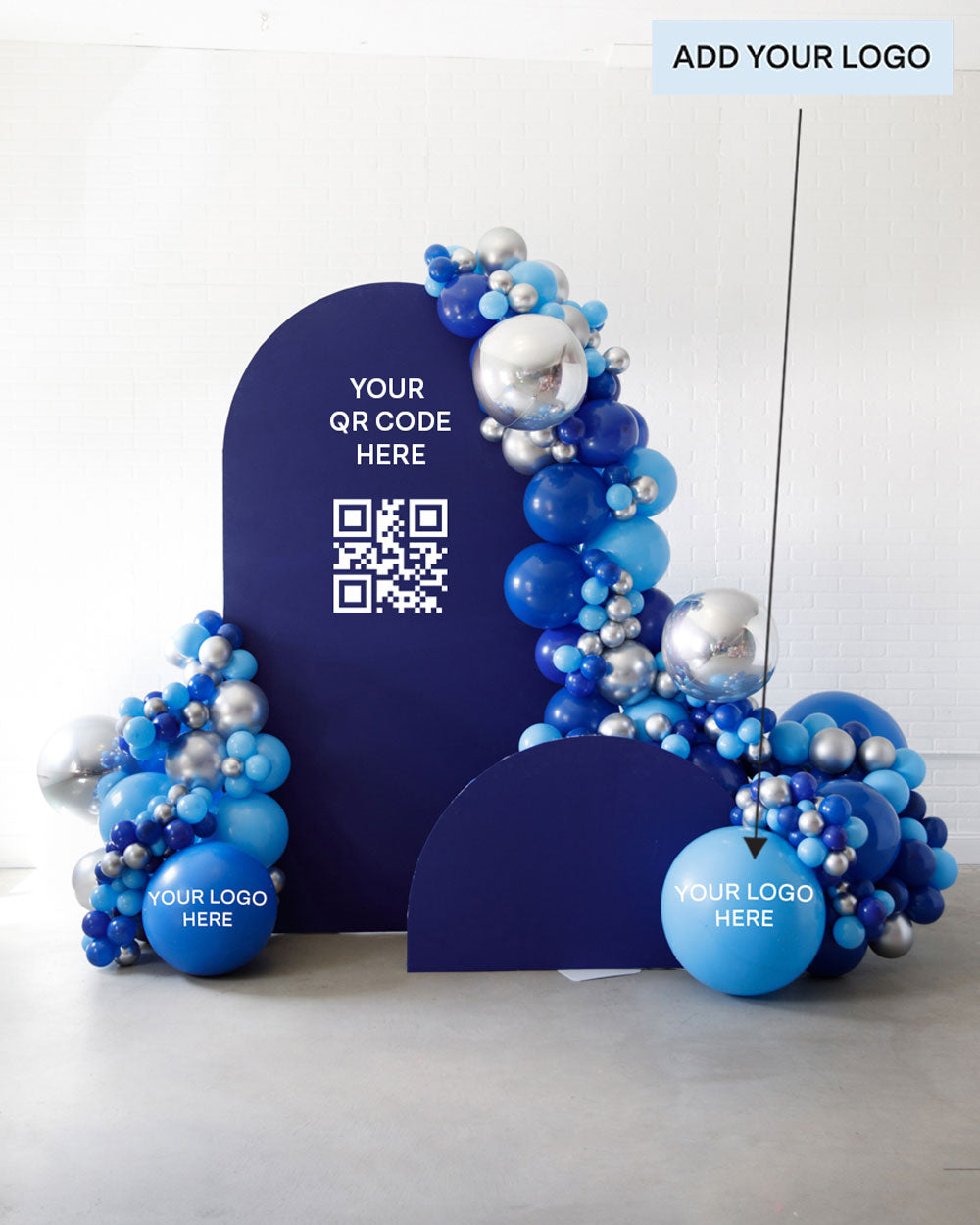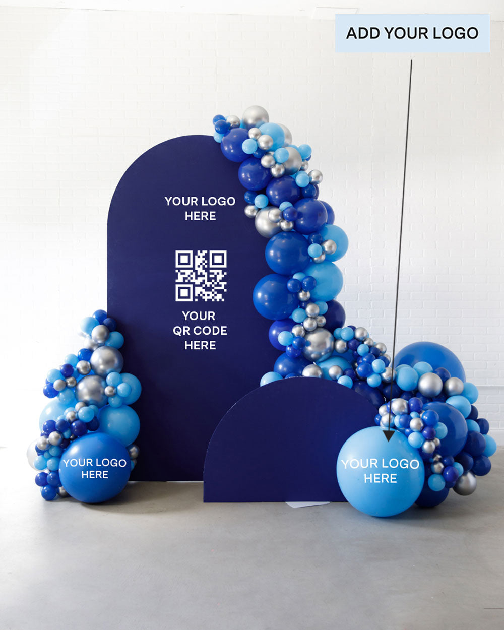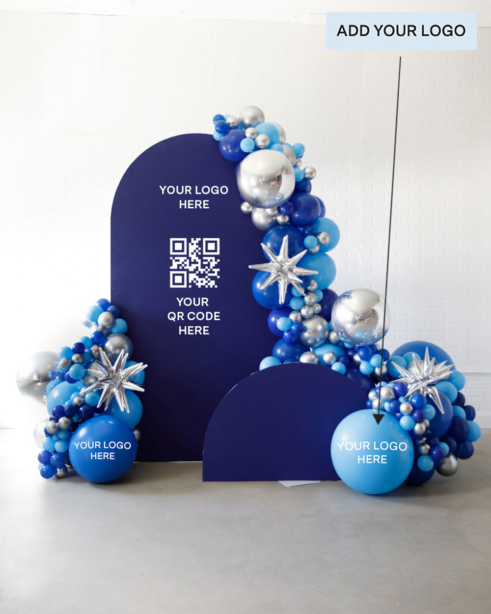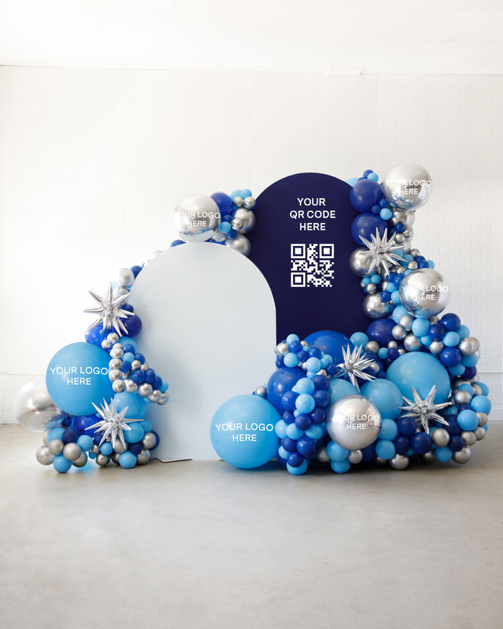 Make a statement will be made in style with this panel and balloon garland set. With panels and organic balloon decor in your company colors overflowing, you'll get the ultimate photo-op. Add foils and stars to make an even bigger statement. Logos can be added for extra branding.