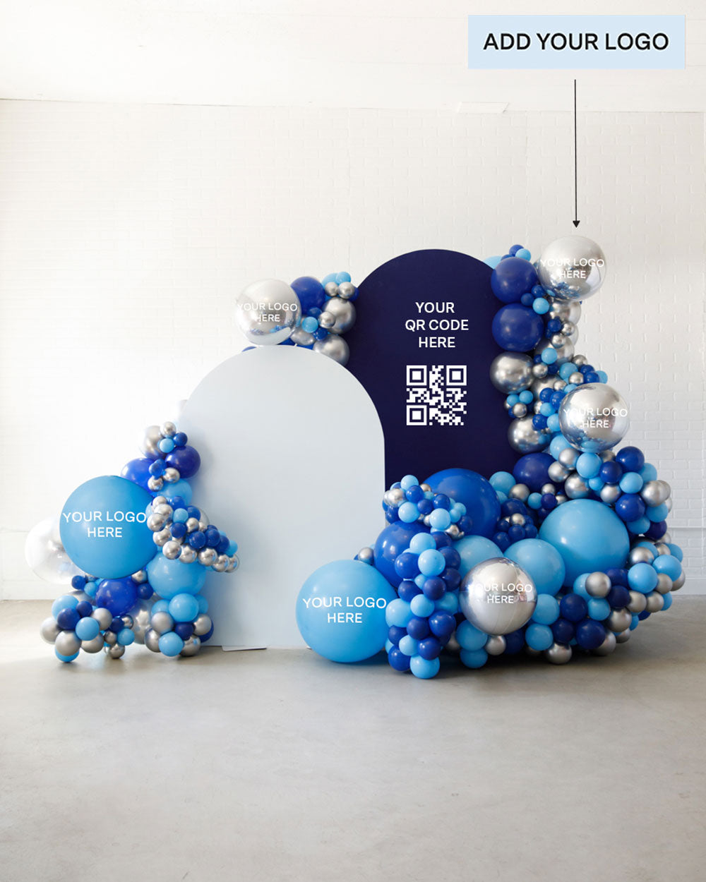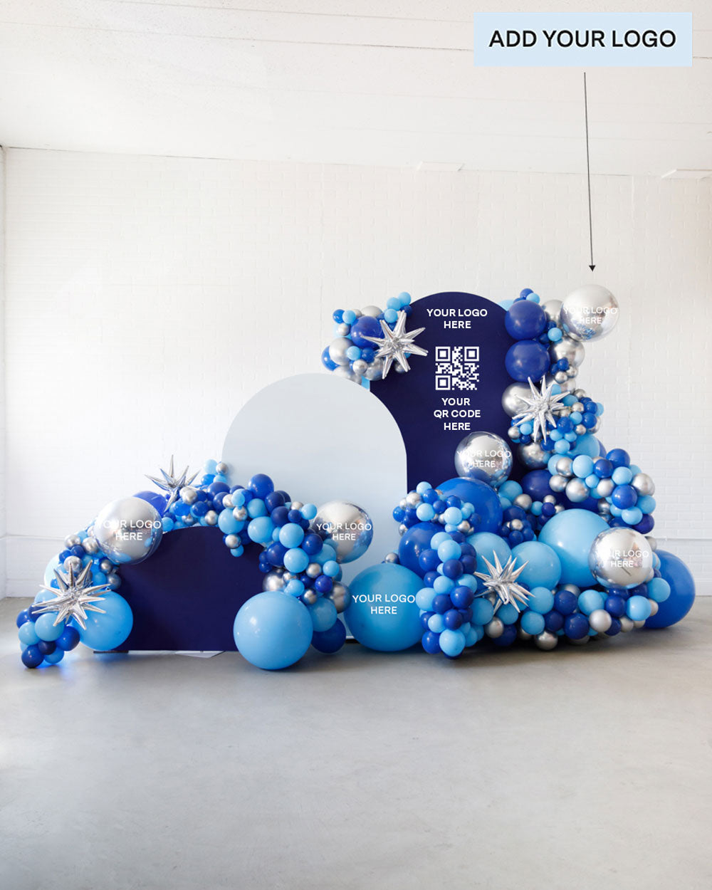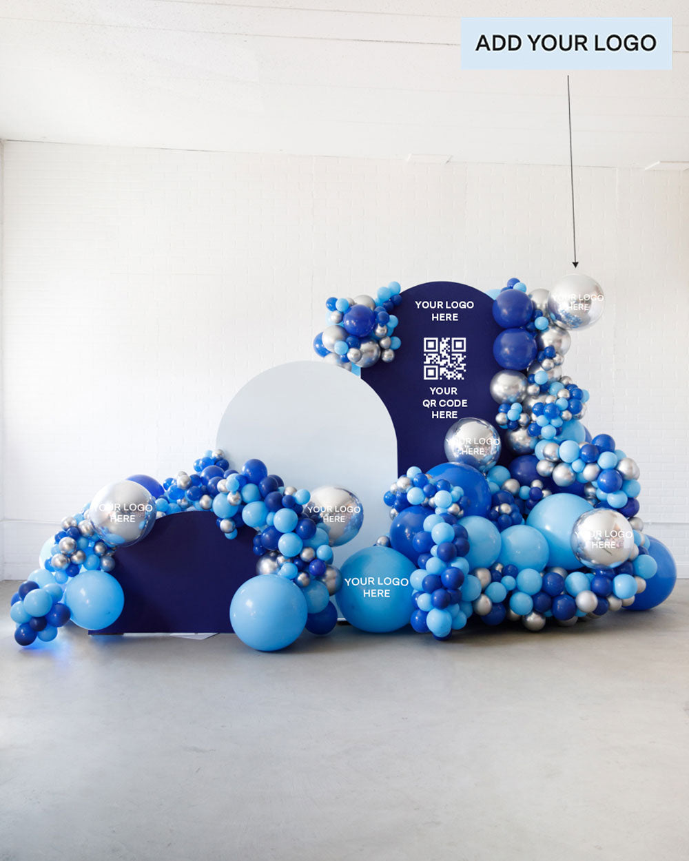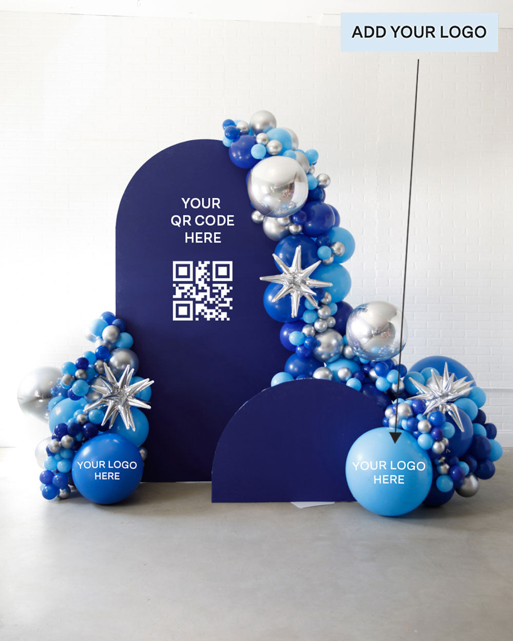 Make a statement will be made in style with this panel and balloon garland set. With panels and organic balloon decor in your company colors overflowing, you'll get the ultimate photo-op. Add foils and stars to make an even bigger statement. Logos can be added for extra branding.