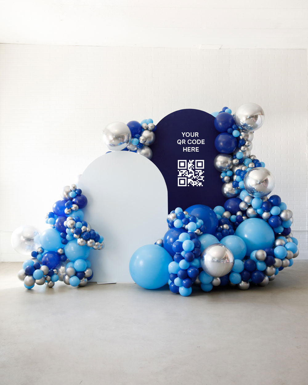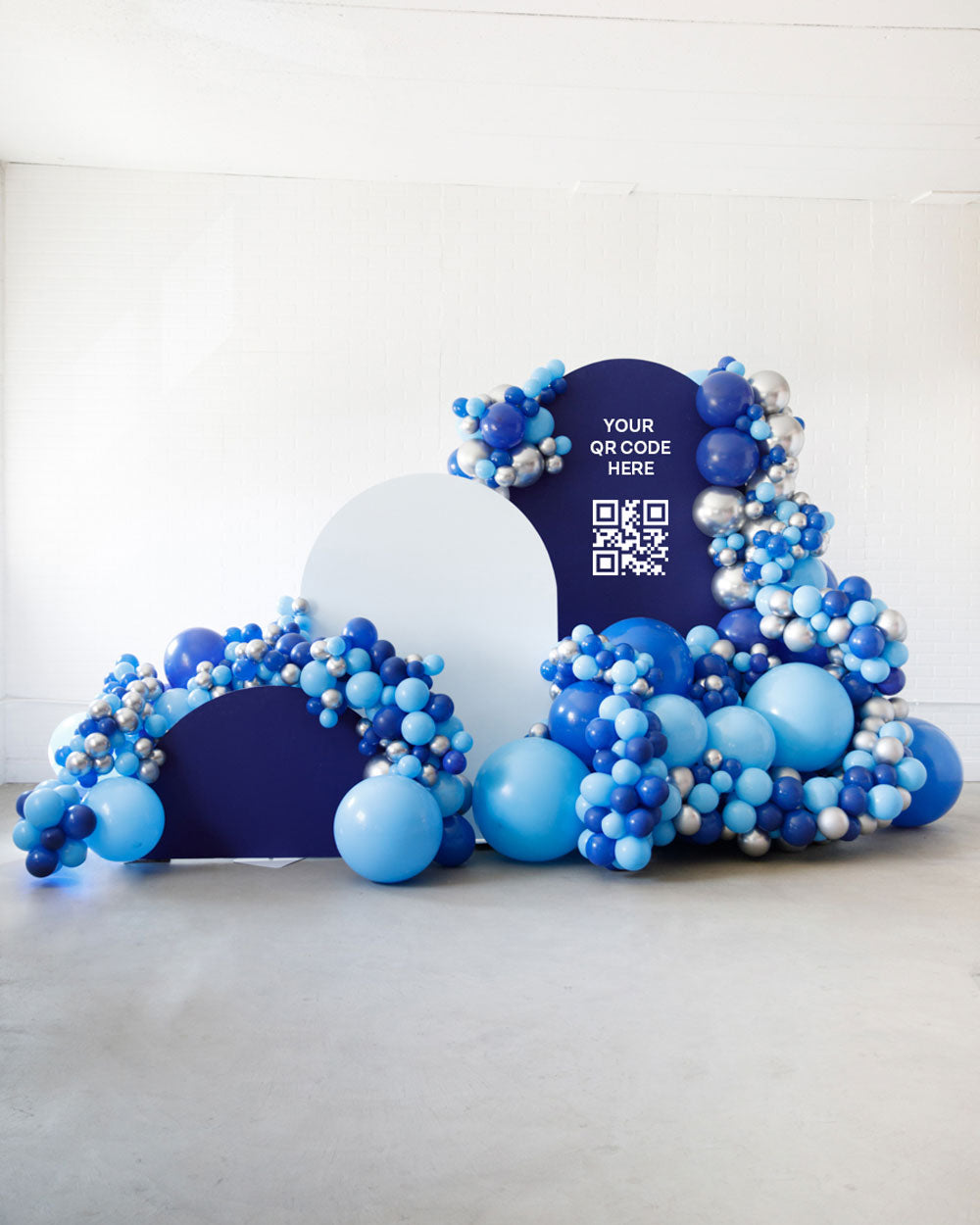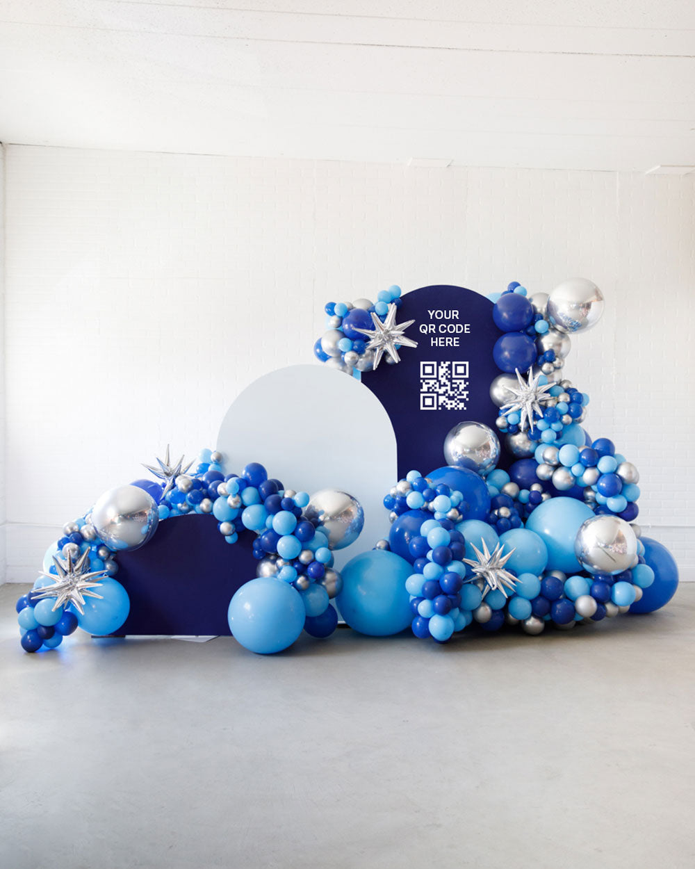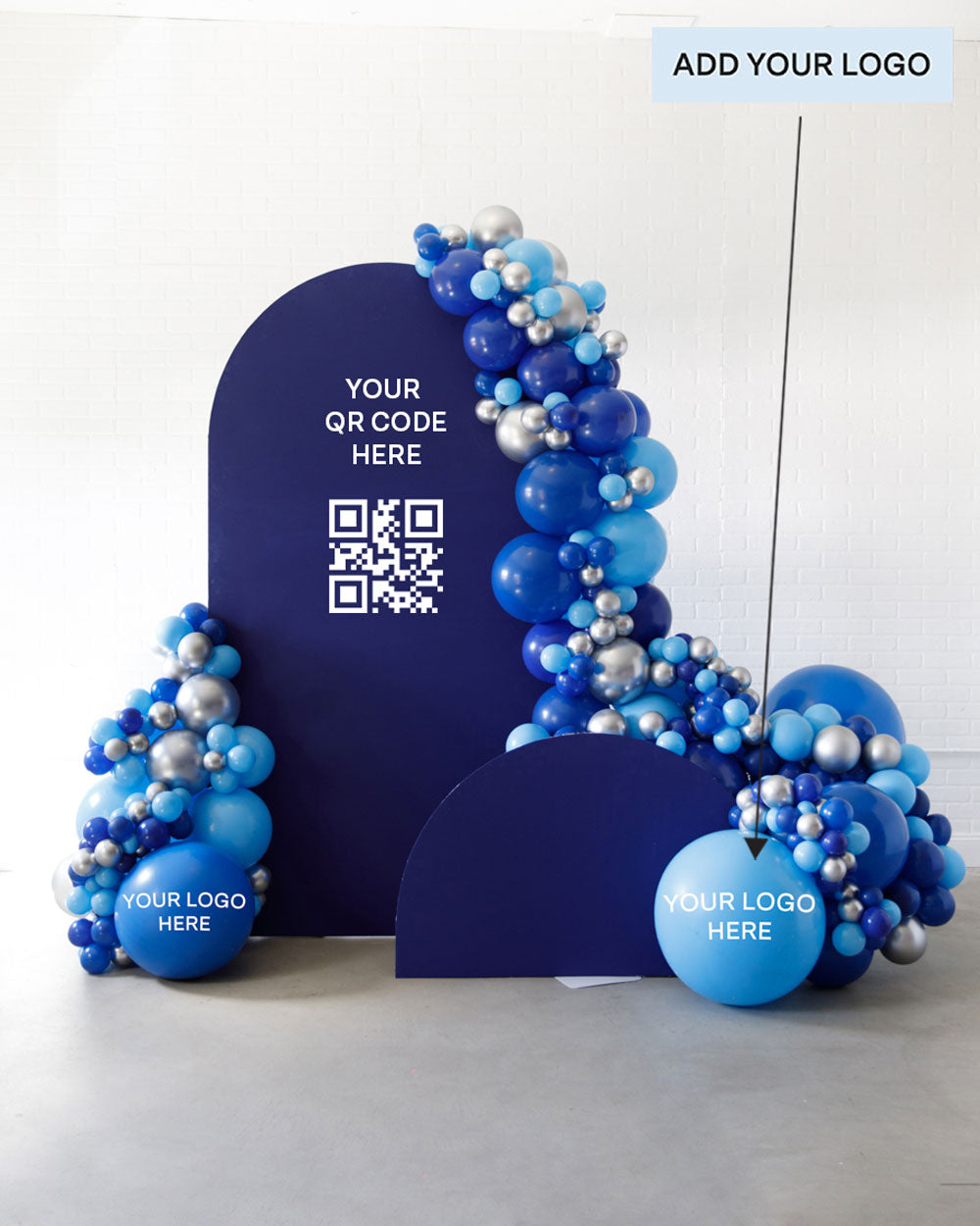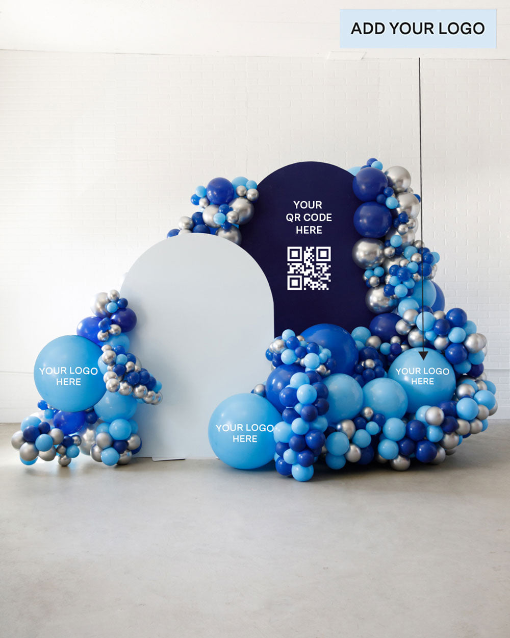 Make a statement will be made in style with this panel and balloon garland set. With panels and organic balloon decor in your company colors overflowing, you'll get the ultimate photo-op. Add foils and stars to make an even bigger statement. Logos can be added for extra branding.