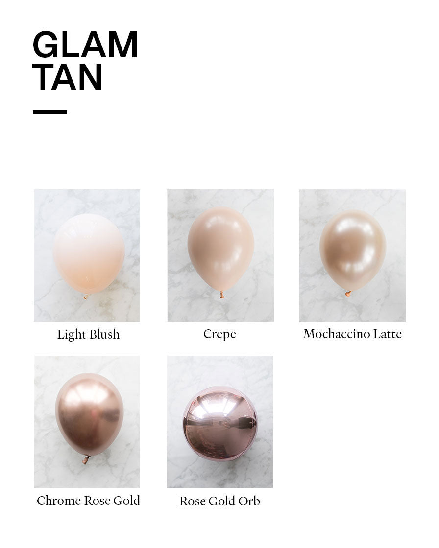 Balloon - light blush, crepe, mochaccino latte, chrome rose gold