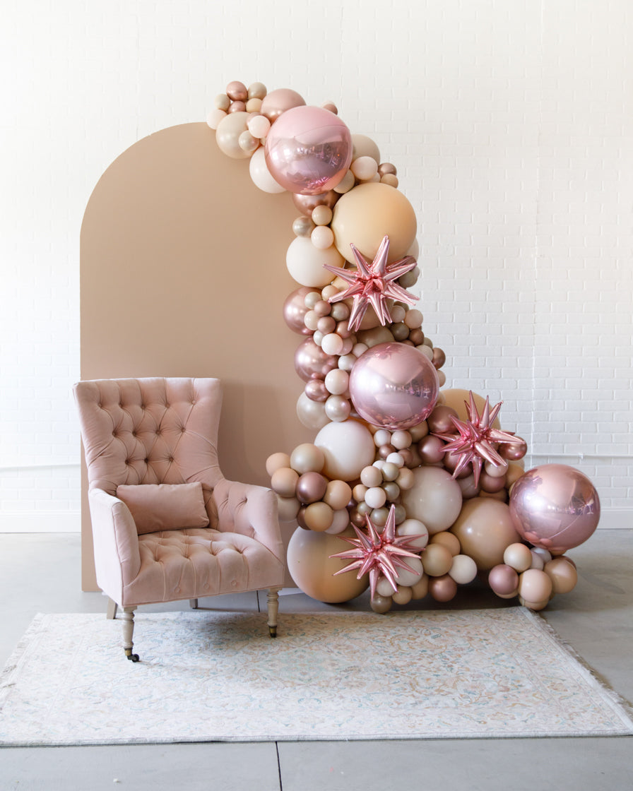 Balloon - light blush, crepe, mochaccino latte, chrome rose gold