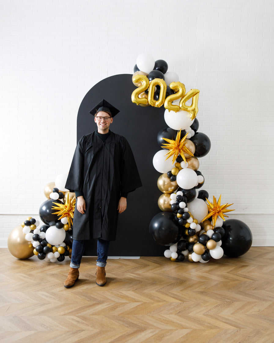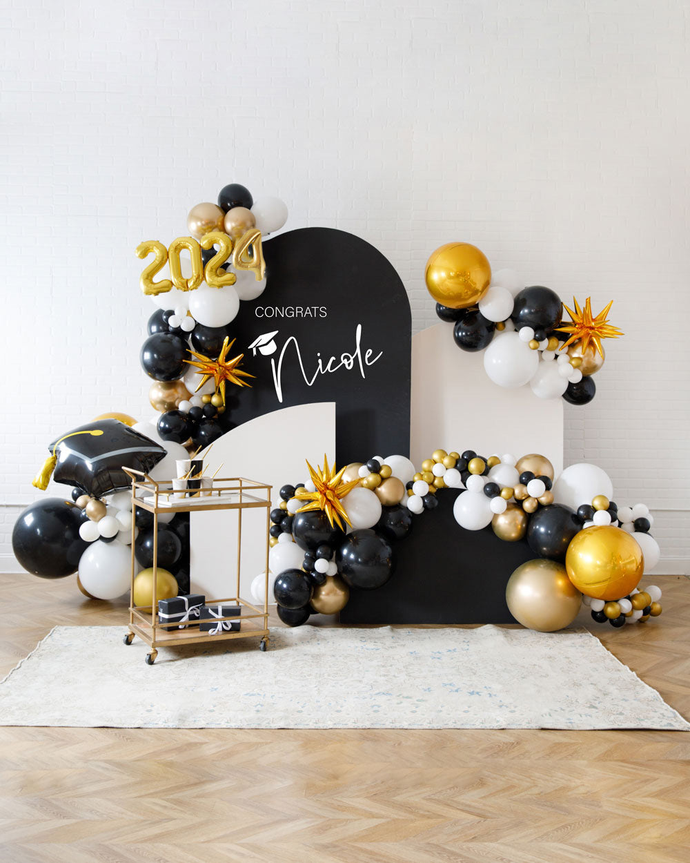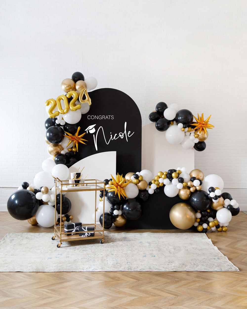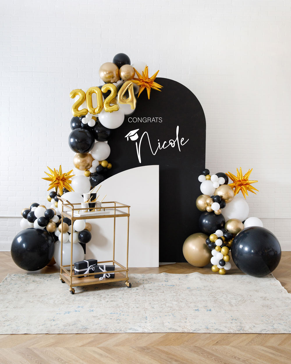 Celebrate their Graduation with a backdrop like no other! This Panel and garland designs the perfect way to toast to new beginnings. Choose between three sizes and add a graduation message for the ultimate photo backdrop you and your guests will love!