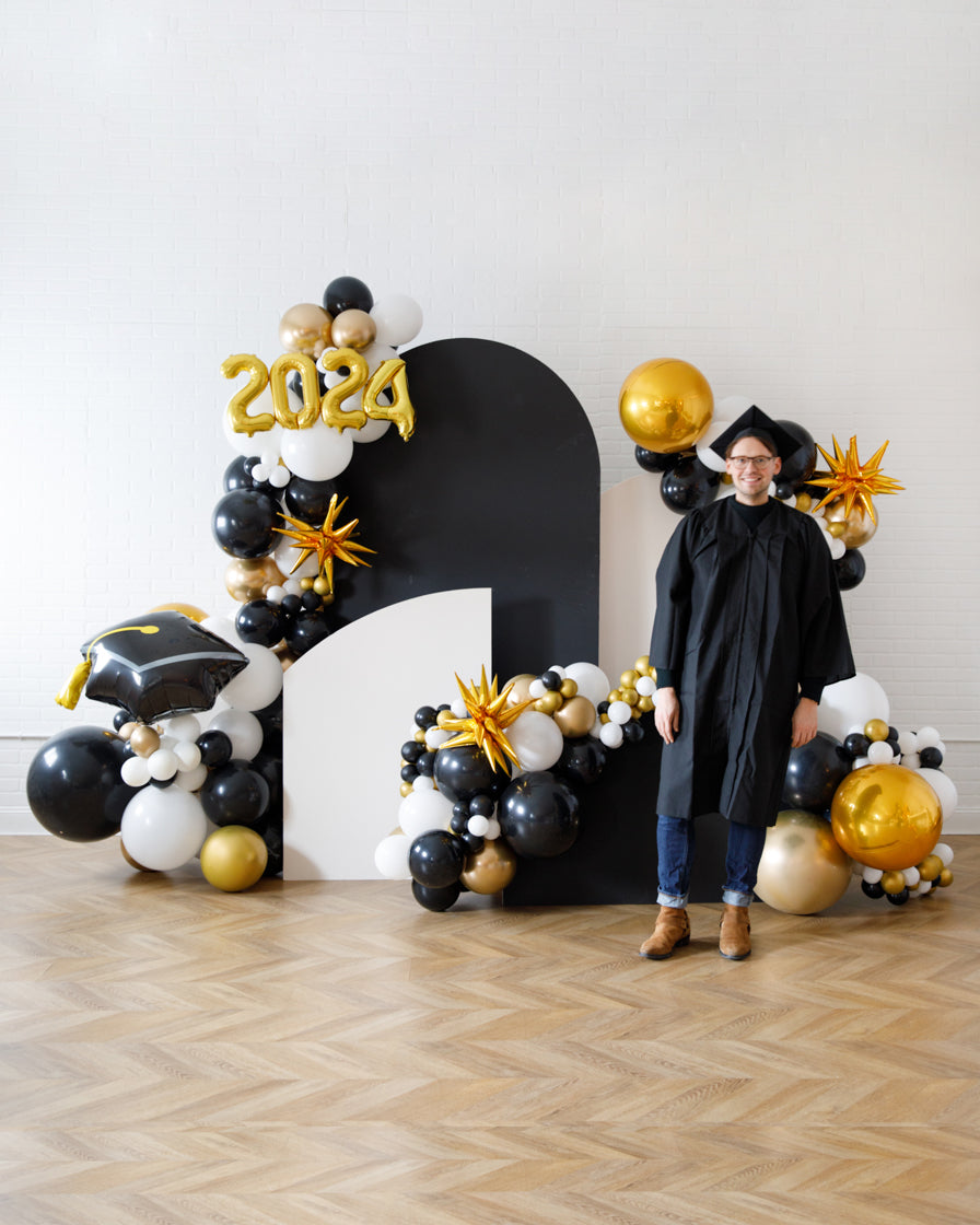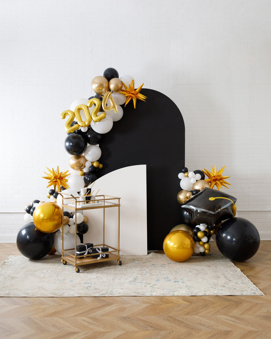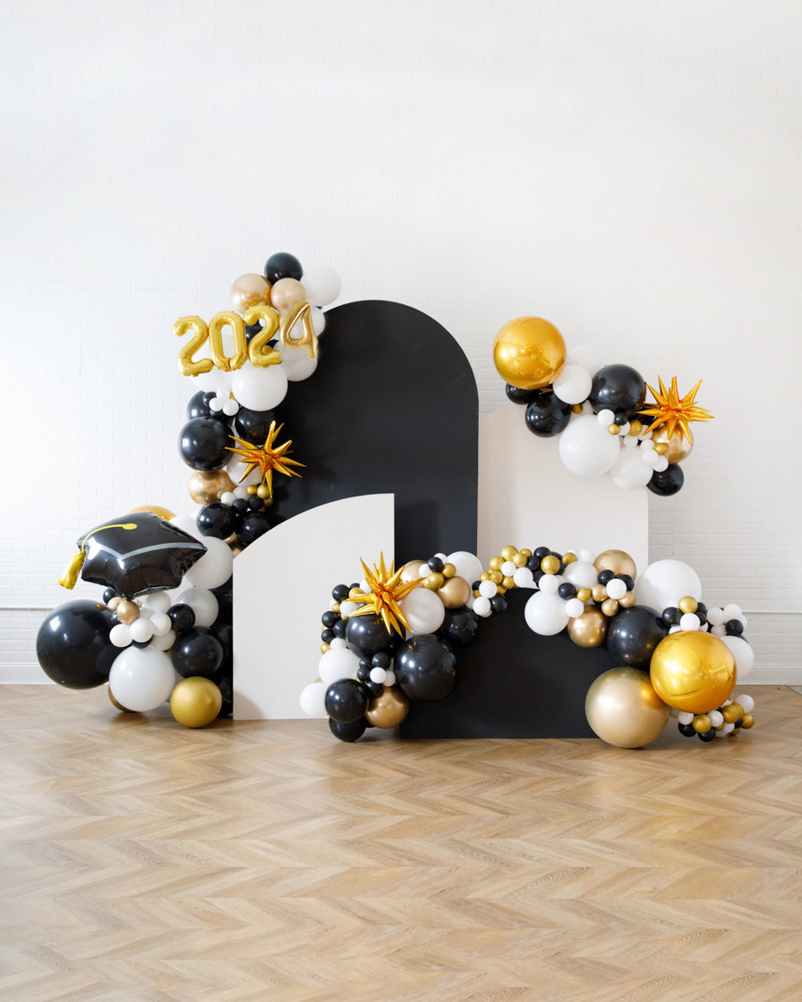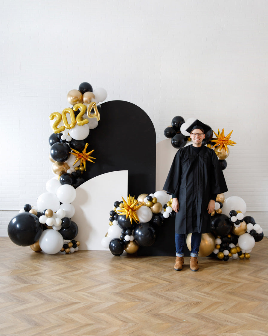 Celebrate their Graduation with a backdrop like no other! This Panel and garland designs the perfect way to toast to new beginnings. Choose between three sizes and add a graduation message for the ultimate photo backdrop you and your guests will love!