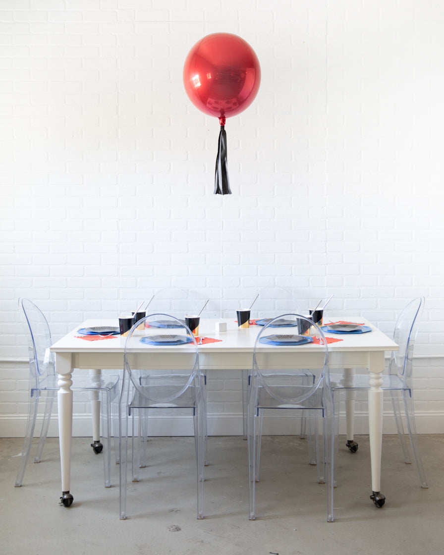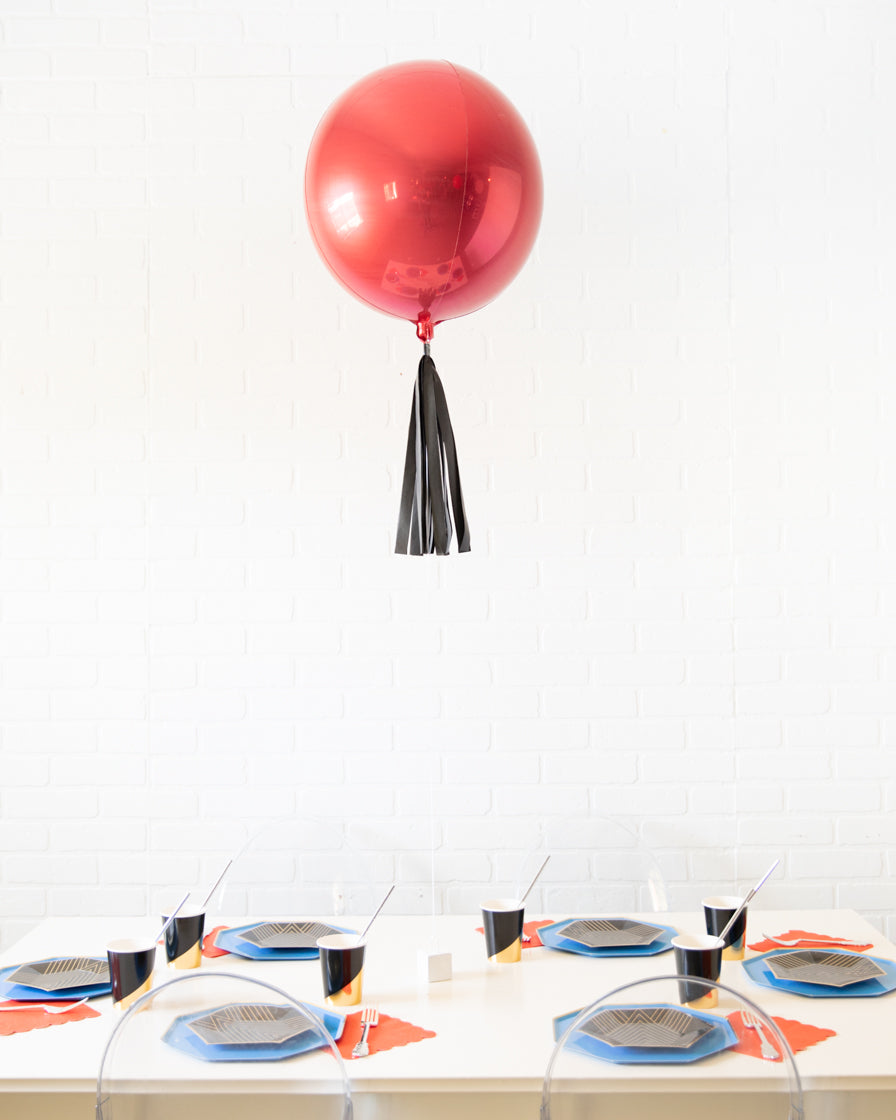 Bring your table to life with our red orb with black skirt! Add this to your table for a bright pop of color for a kids Spiderman themed birthday party. Also, a great choice for sweets table and favor's cart.