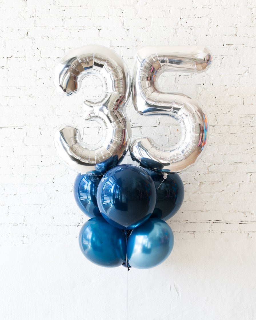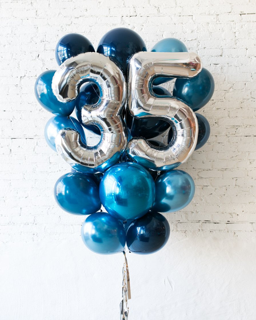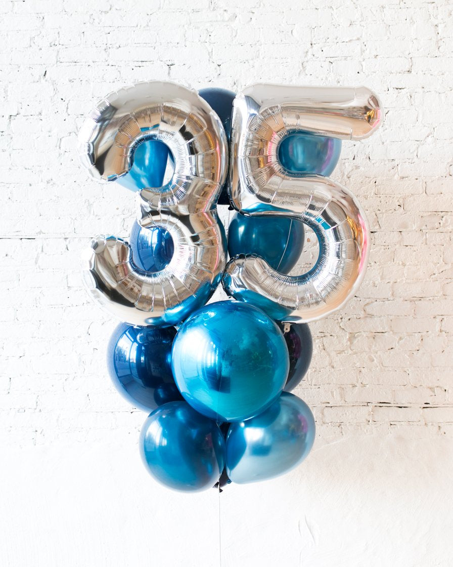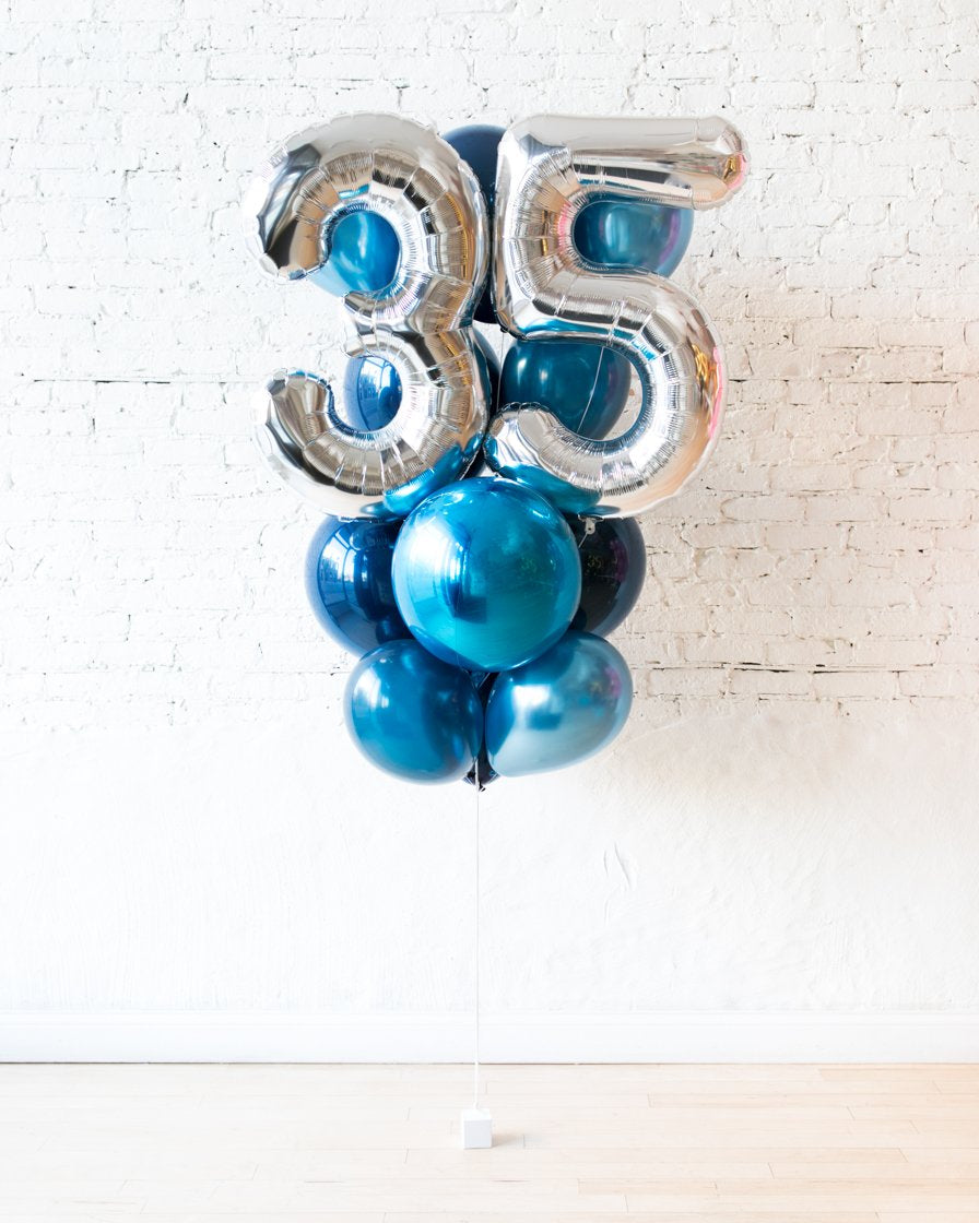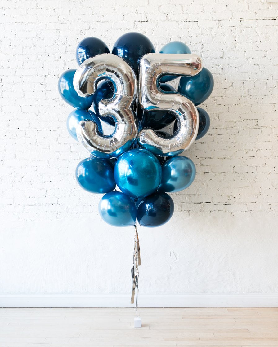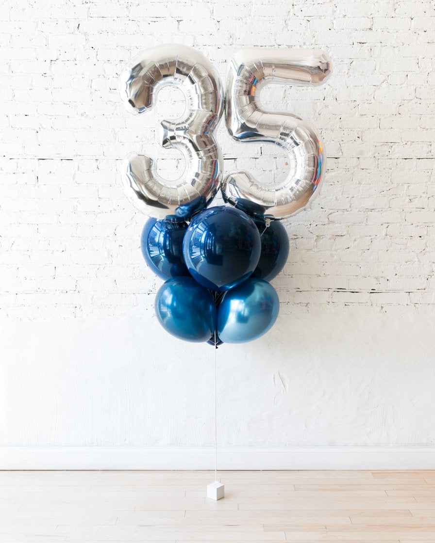 GIFT-Blue Palette Foil Number and Latex Balloon Bouquet