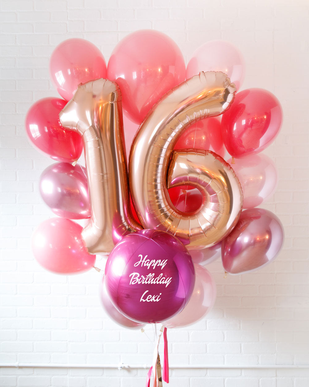 Celebrate a special day and send a gift to impress! This bouquet combines the popular foil numbers, which can be customized to any age, and a beautiful arrangement of ballloons. Offered in all popular colors so you can select the palette of choice. For an added touch of personalization, add a card custom vinyl.