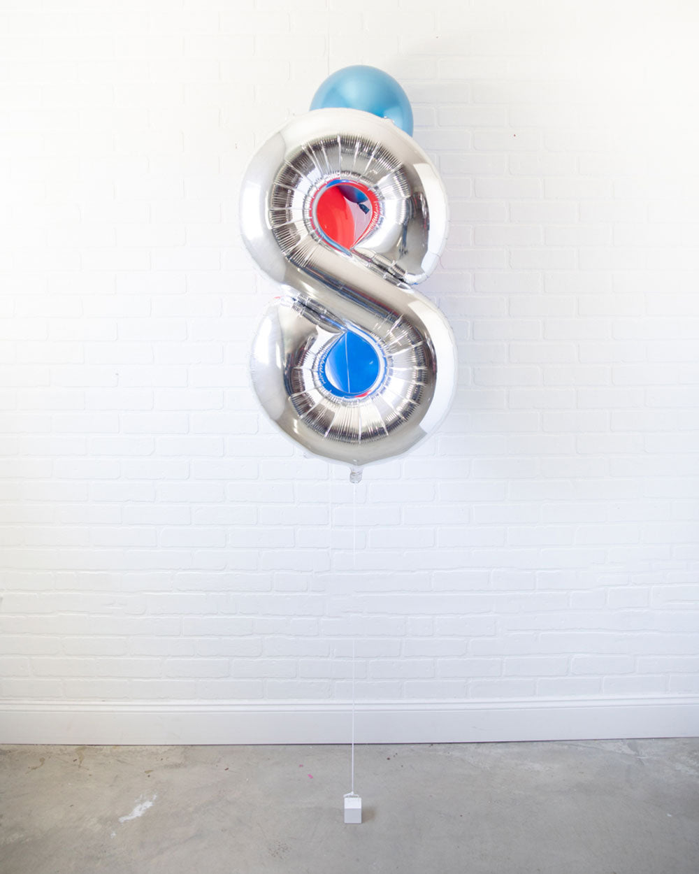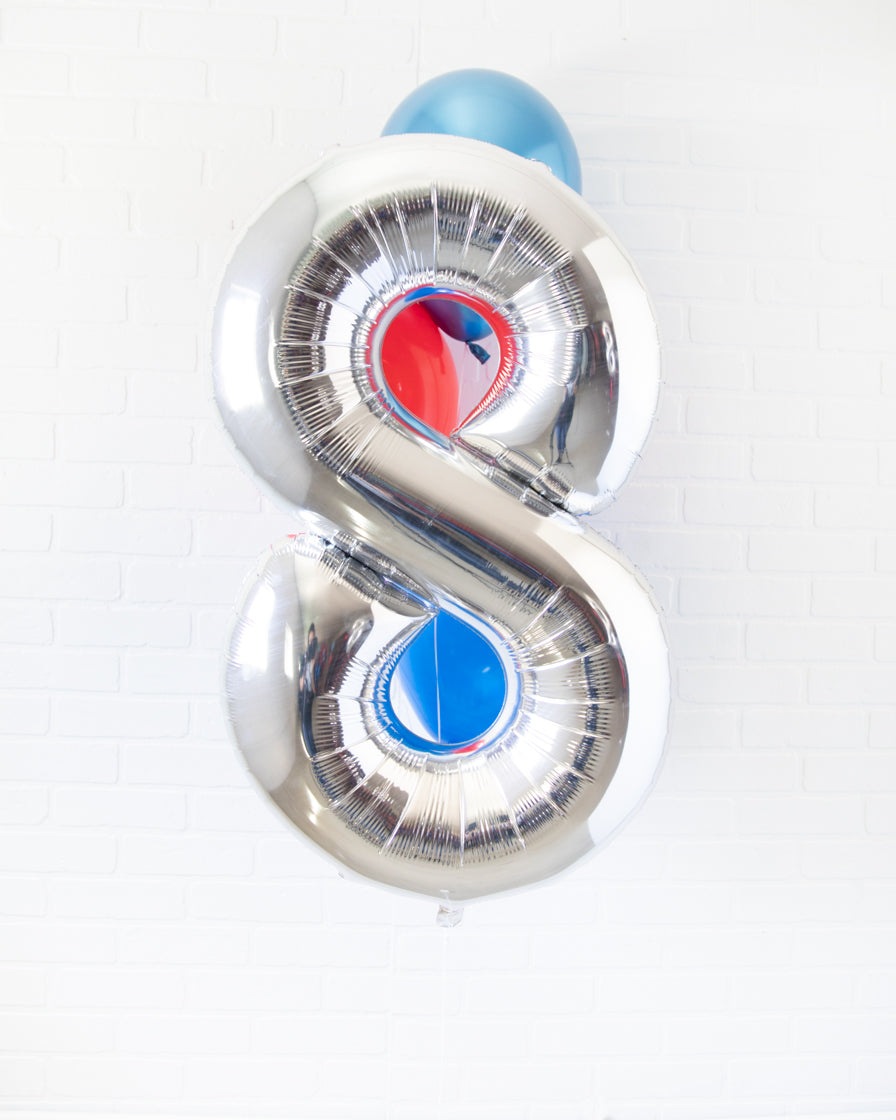 Everyone's favorite, the 34in foil number and skirt turned into a bouquet. This includes a silver number balloon and bright helium filled balloons for an effortless look. Great as decor or as a photo prop.