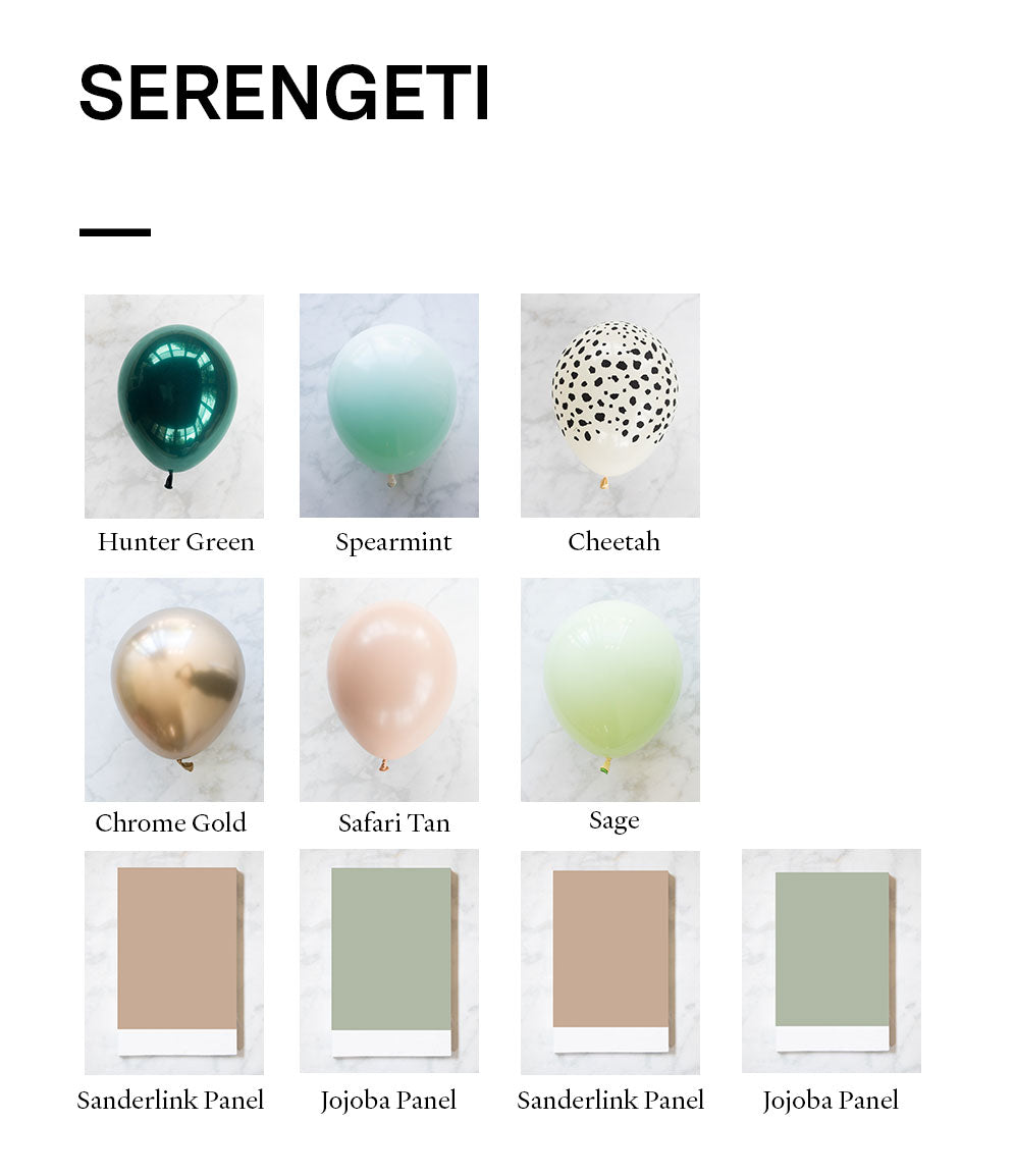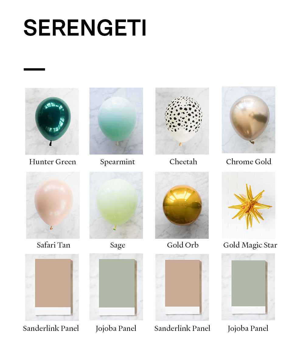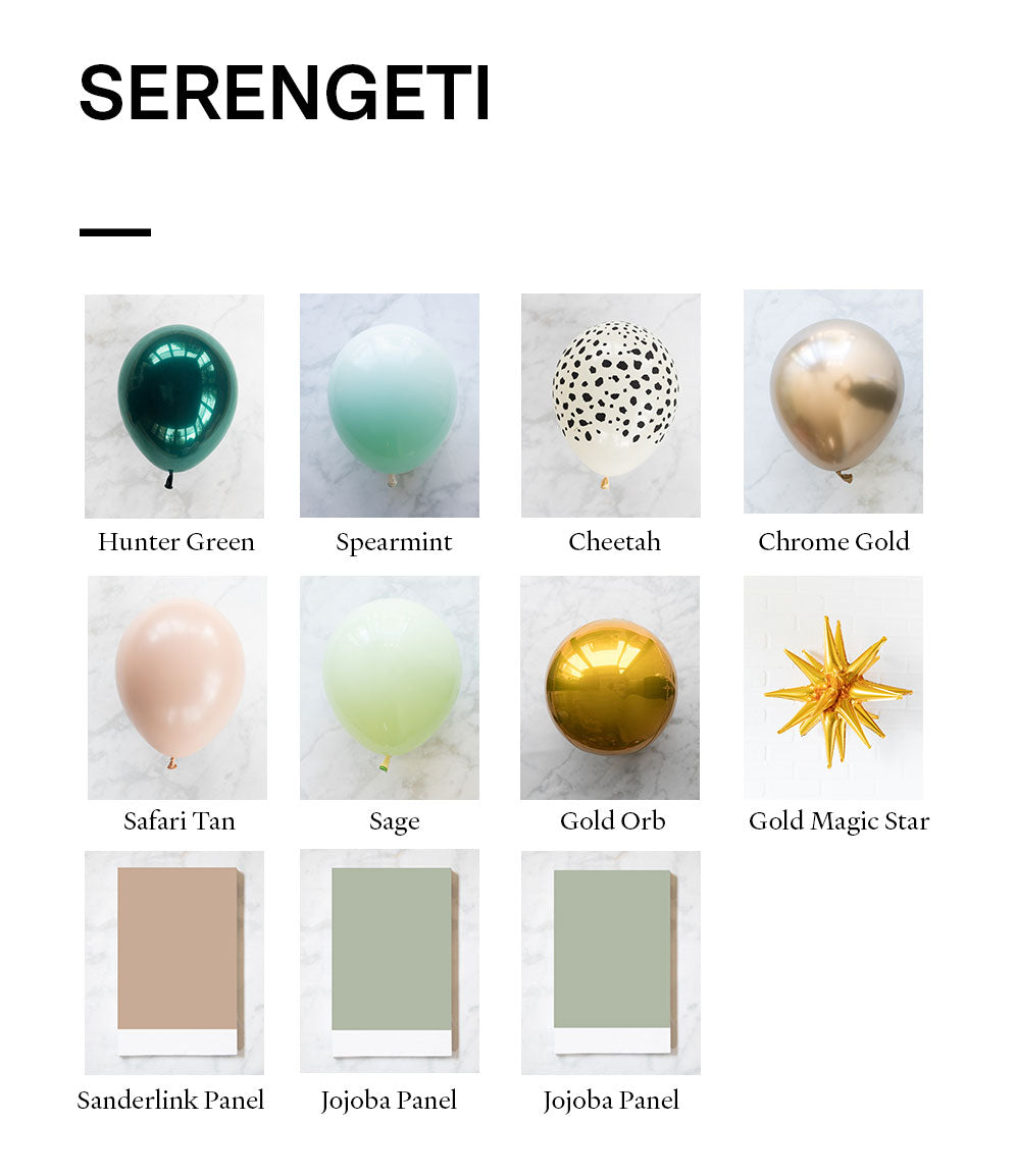 Balloon - cheetah spots, sage,spearmint, hunter green, safari tan, chrome gold