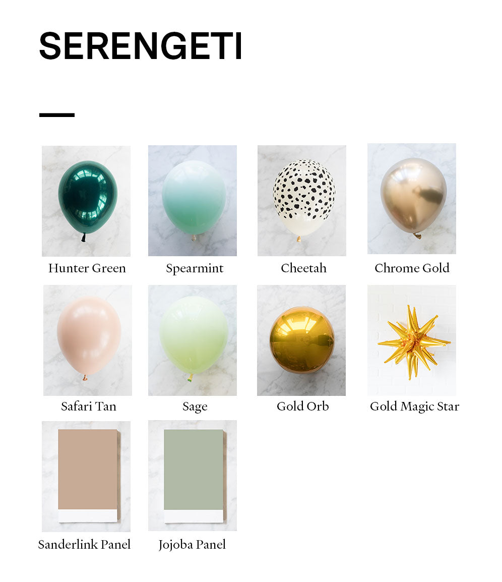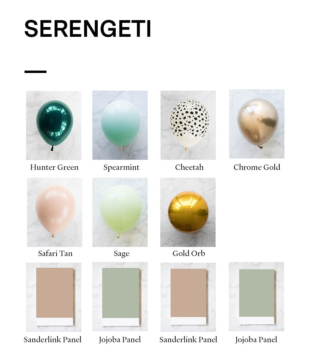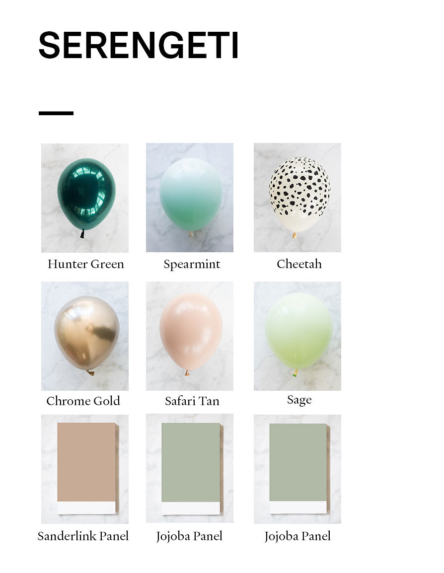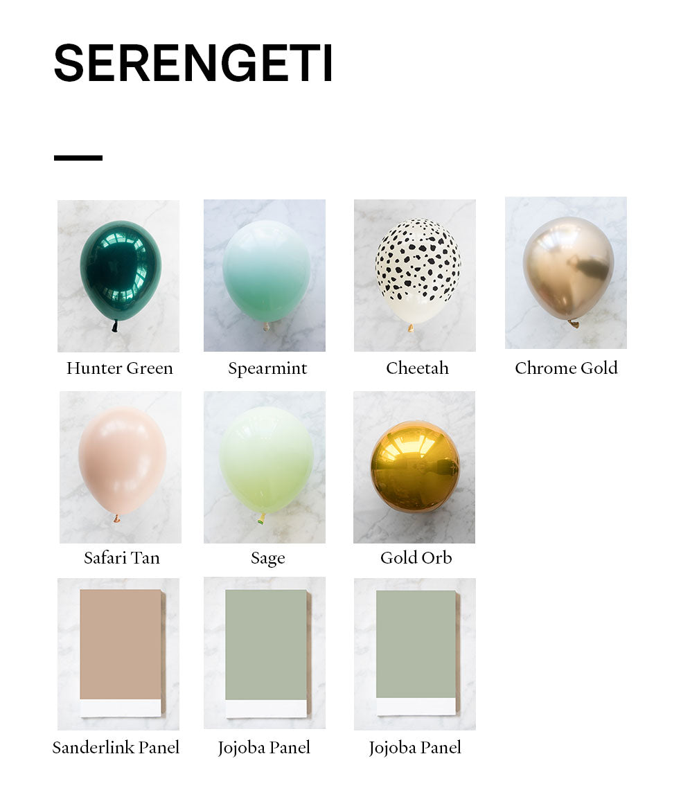 Balloon - cheetah spots, sage, spearmint, hunter green, safari tan, chrome gold