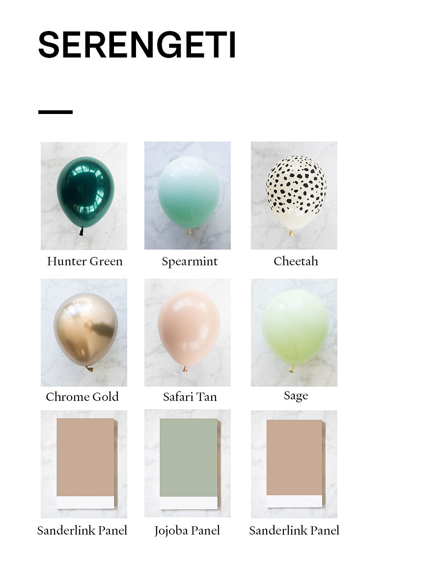Balloon - cheetah spots, sage, spearmint, hunter green, safari tan, chrome gold
