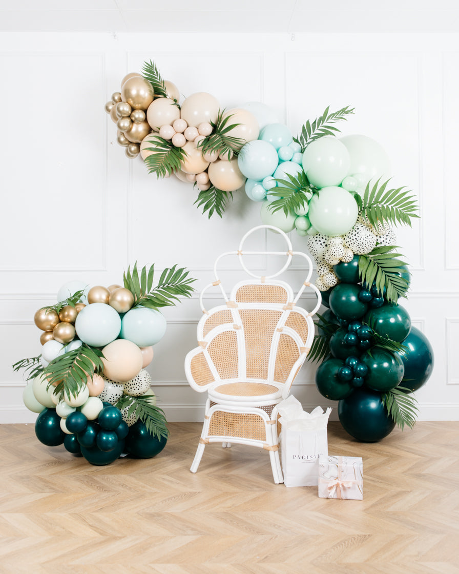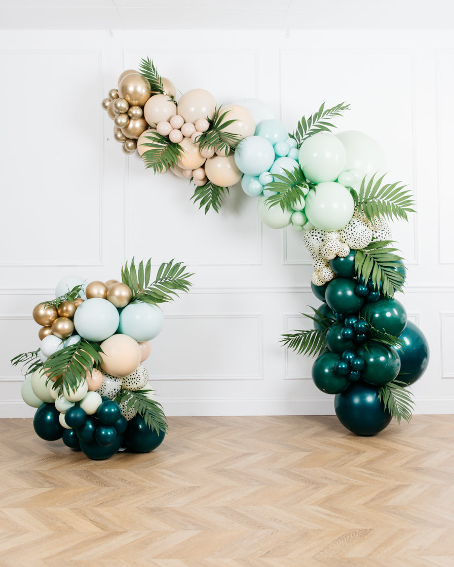 Make a statement with our serengeti themed balloon garland. This includes a 12ft air filled balloon garland with greenery accents, as well as a balloon cluster. Add this to your space for a one of kind baby shower.