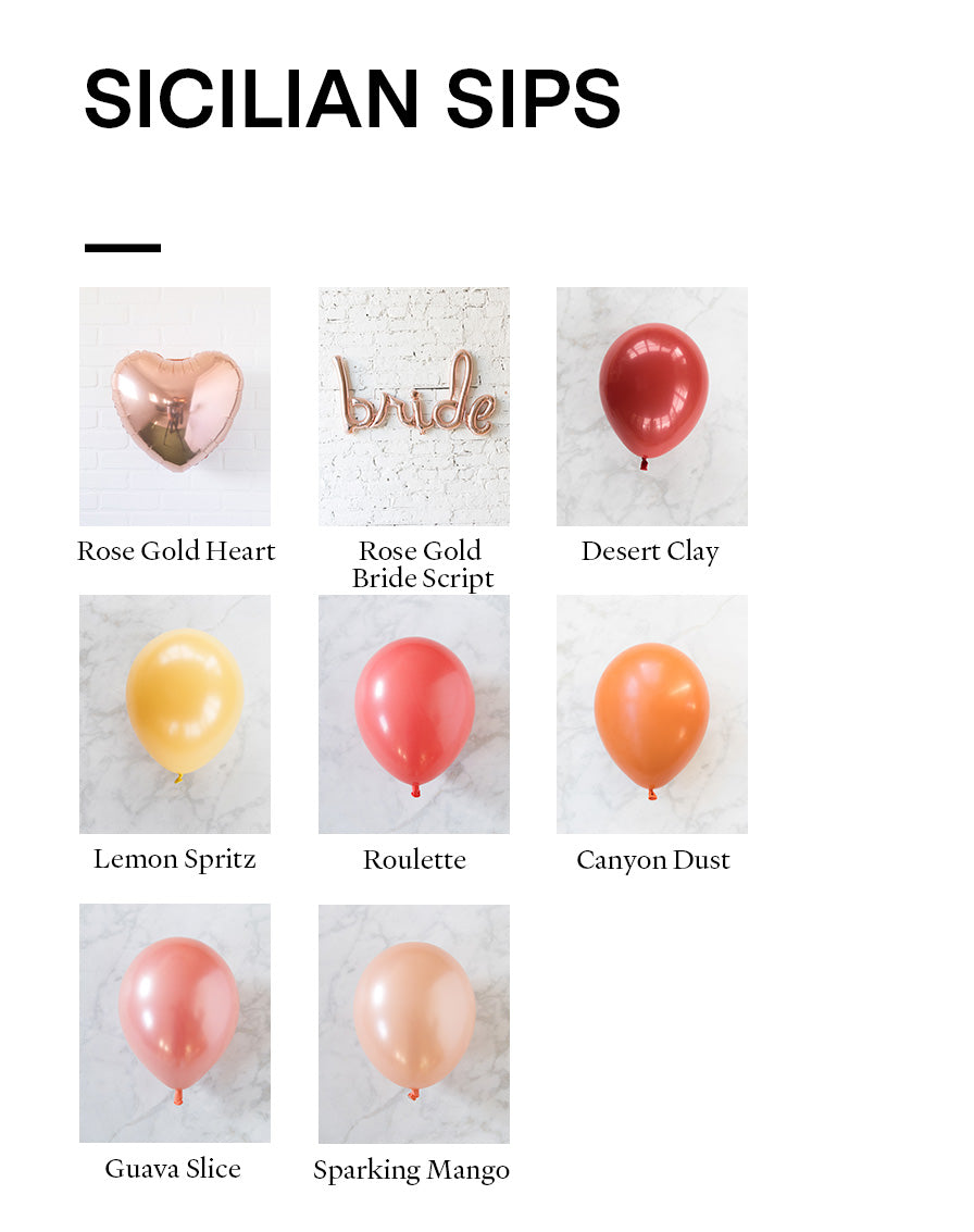 Complete the look with giant balloons or balloon columns from this sicilian sips collection.