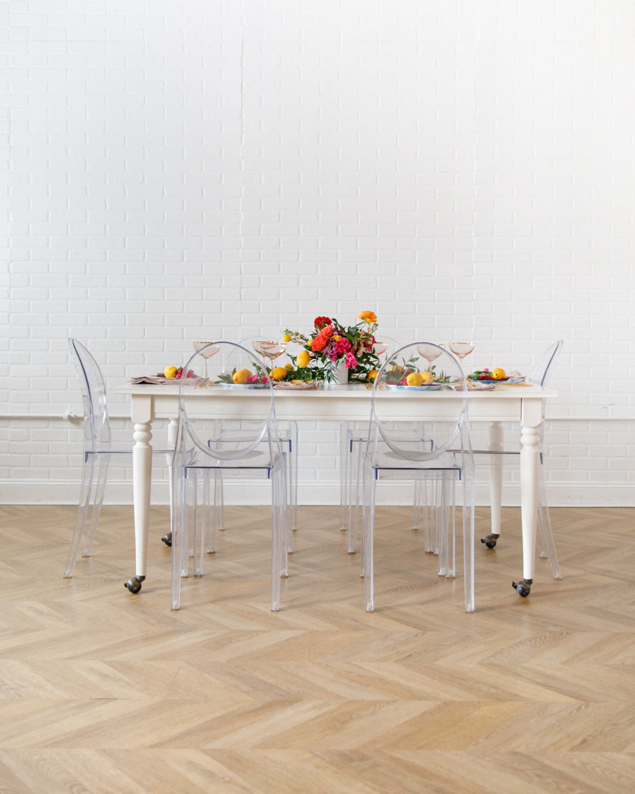 Set the table in style with our beautiful Sicilian Sips inspired floral arrangement set! In bright shades of red, orange, yellow, fuchsia, these small centerpieces include garden roses, ranunculi and lisianthus to create a truly one of a kind look. Your table will blossom! Place these along your dining table, around the bar or on highboys to dress up any space.
