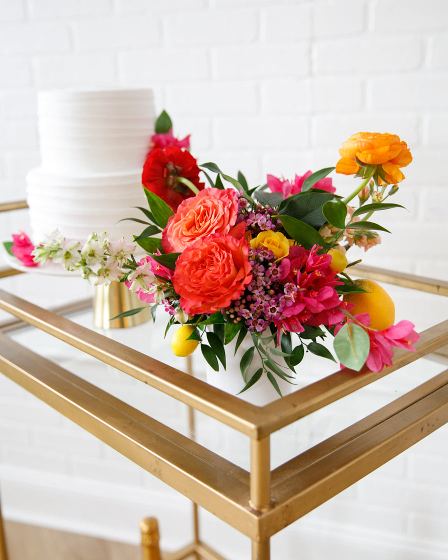* Designed with your event in mind, flowers are at their peak bloom on the day of your event. Longevity may vary based on temperature, environment and handling. Florals should avoid direct sunlight. Water daily to extend lifespan.