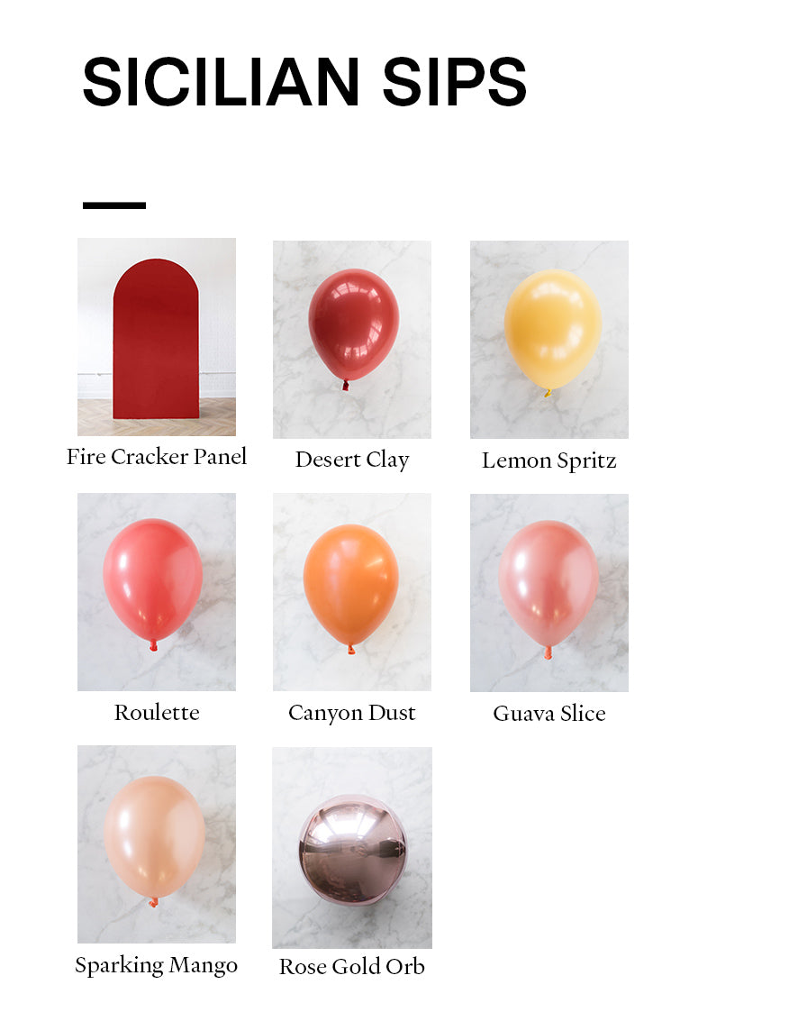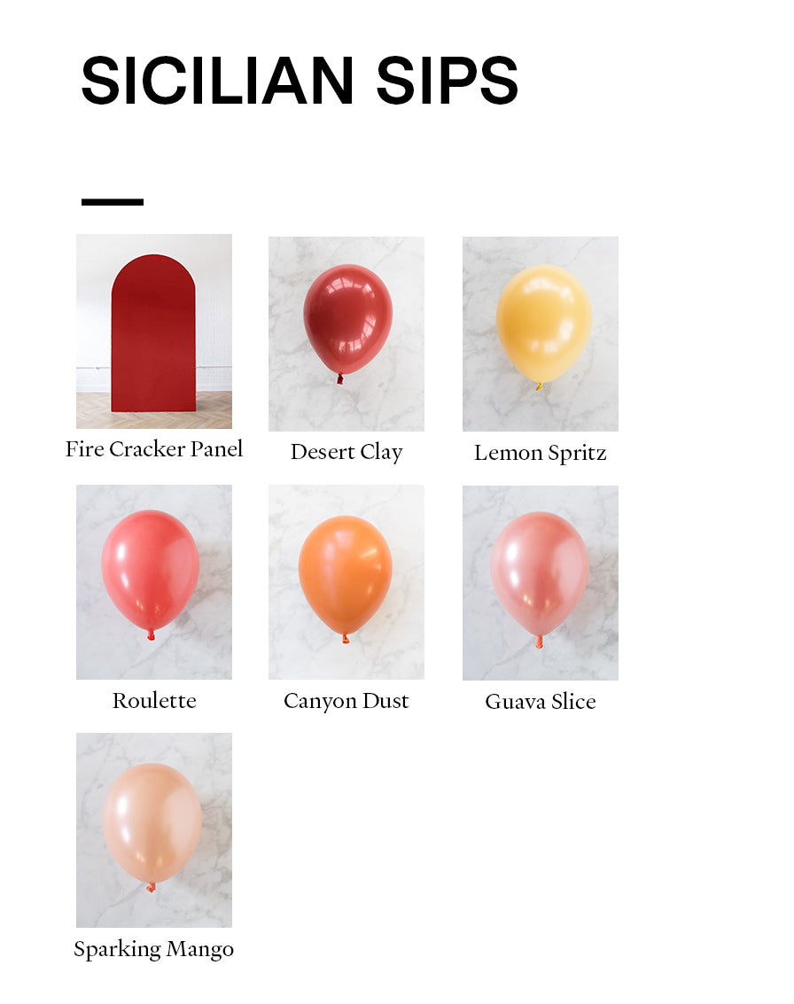 Balloons - lemon spritz, desert clay, roulette, guava slice, sparking mango, canyon dust