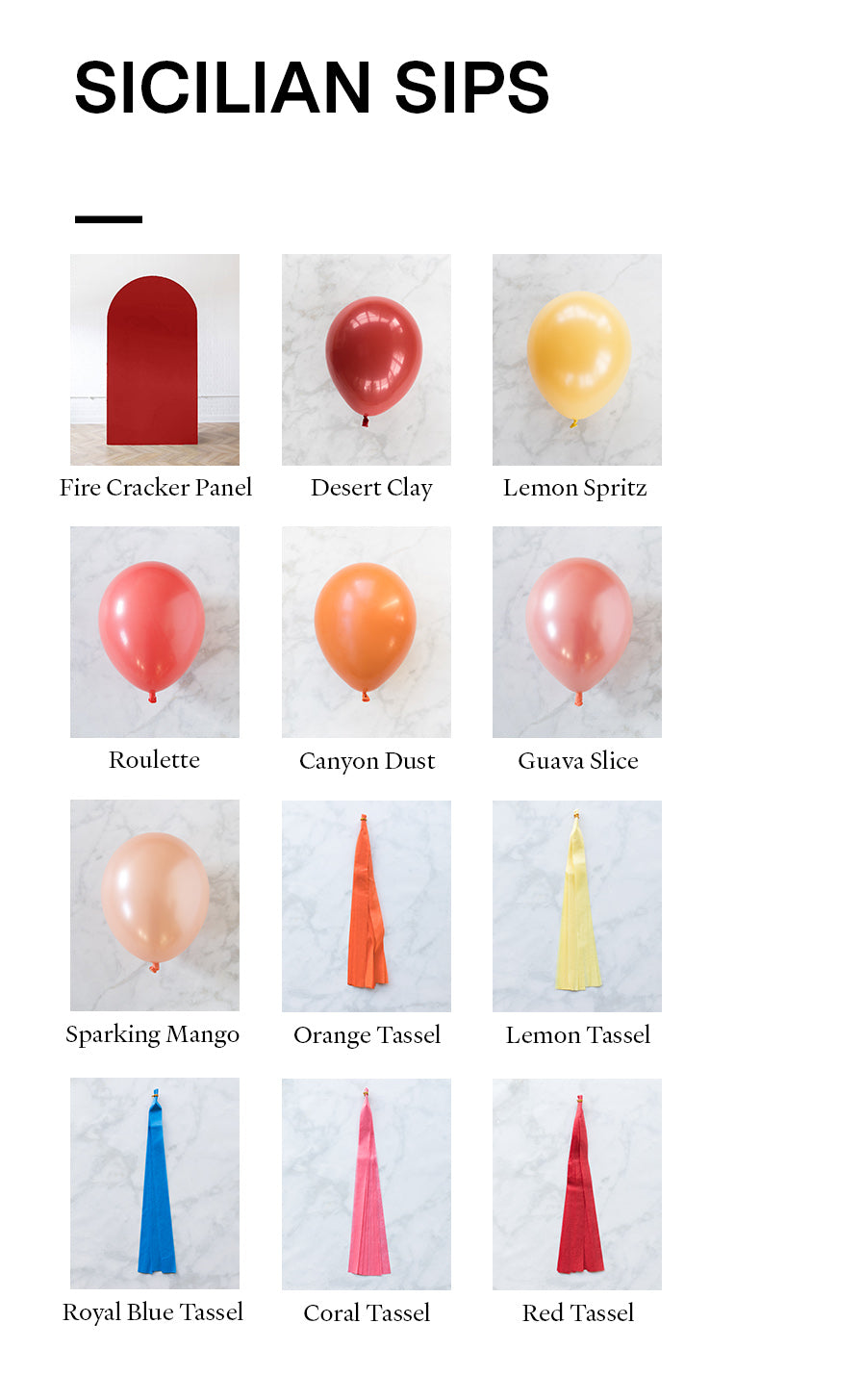 Balloons - lemon spritz, desert clay, roulette, guava slice, sparking mango, canyon dust