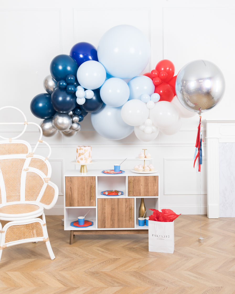 Balloon - white, red, navy, light blue, silver