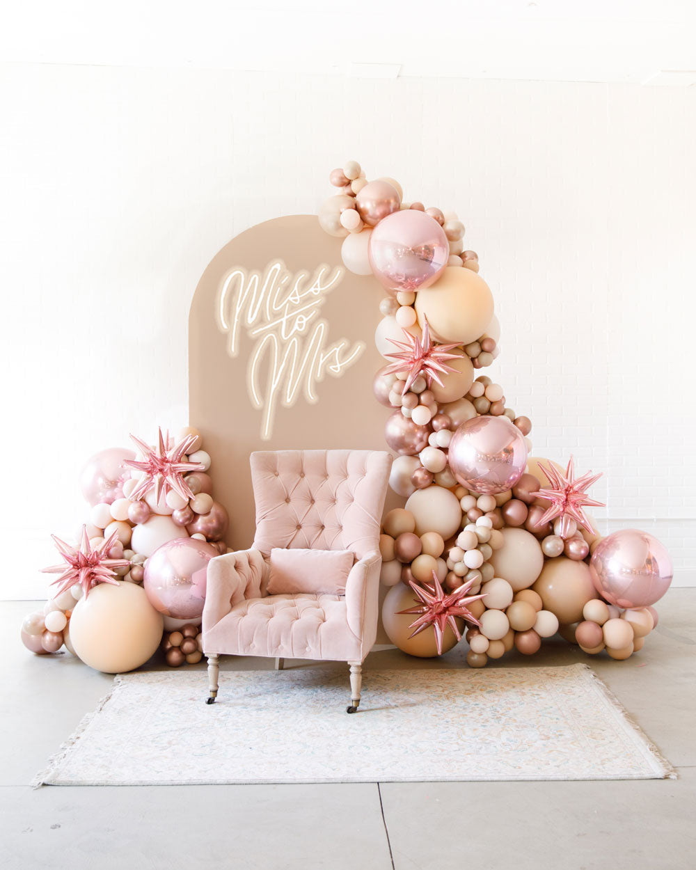 Stand out in style with this panel and balloon garland design. This includes a 7ft panel backdrop with organic balloon garland to match. Add foil accents to make your photo backdrop stand out even more!