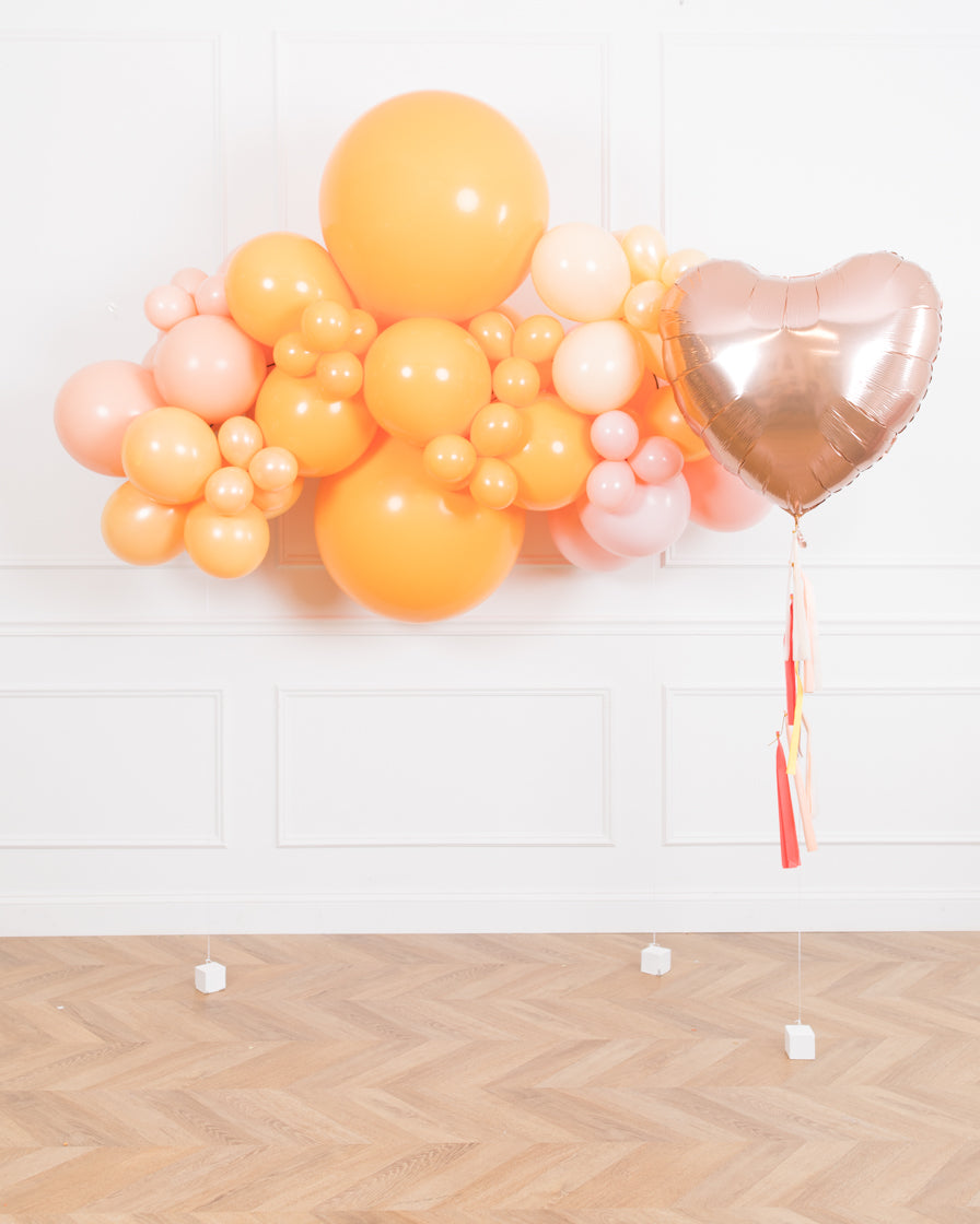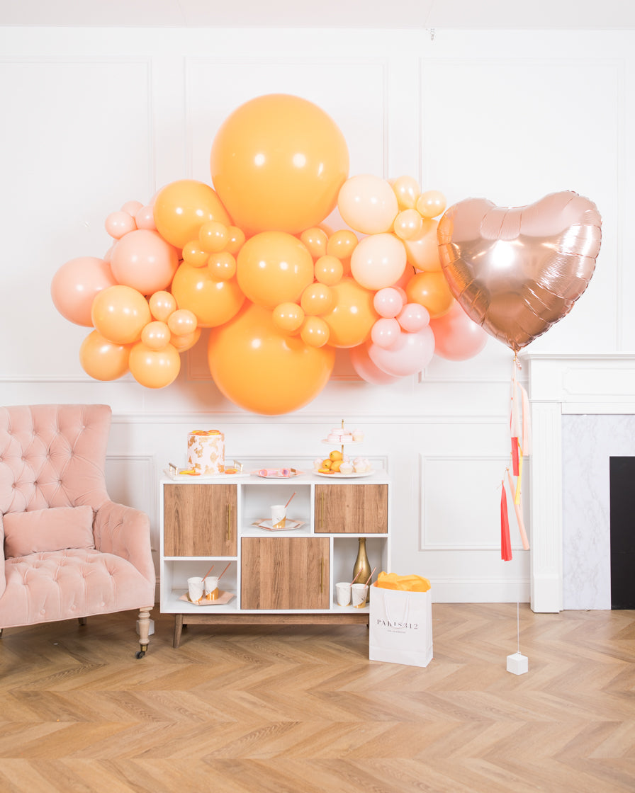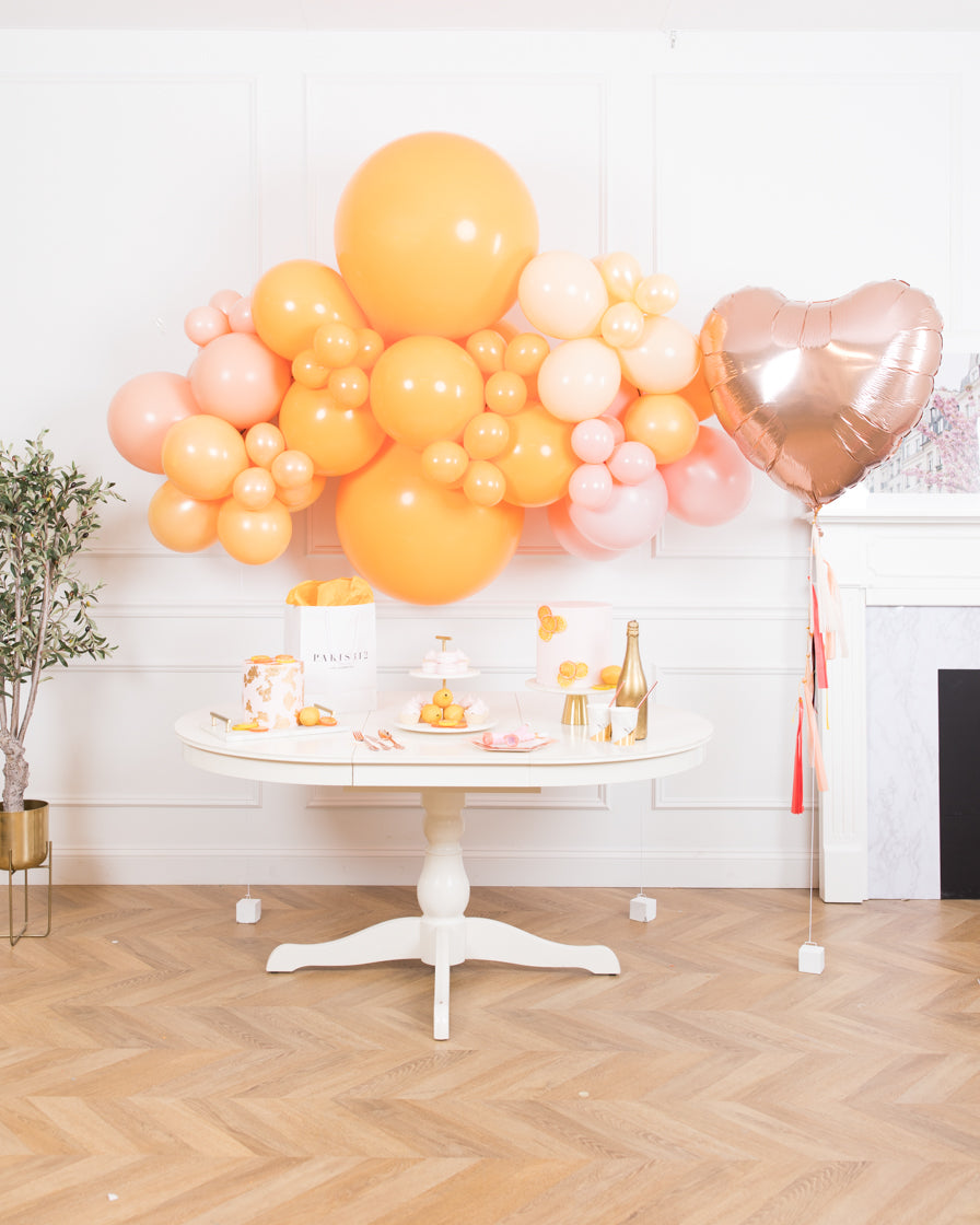 Create a beautiful celebration with this fun citrus themed set. This includes a 6ft floating balloon garland and rose gold orb balloon. Installation not required so you can create an instant party anywhere.