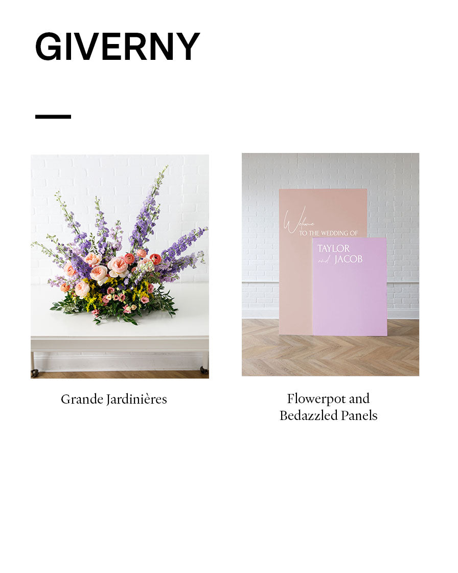 Create an entryway like no other with our new Fabienne Panel set. This includes two colored panels with two captivating grand Jardinières that elevate any space. This works perfectly to greet guests by the entry, the bar or near the favors table.