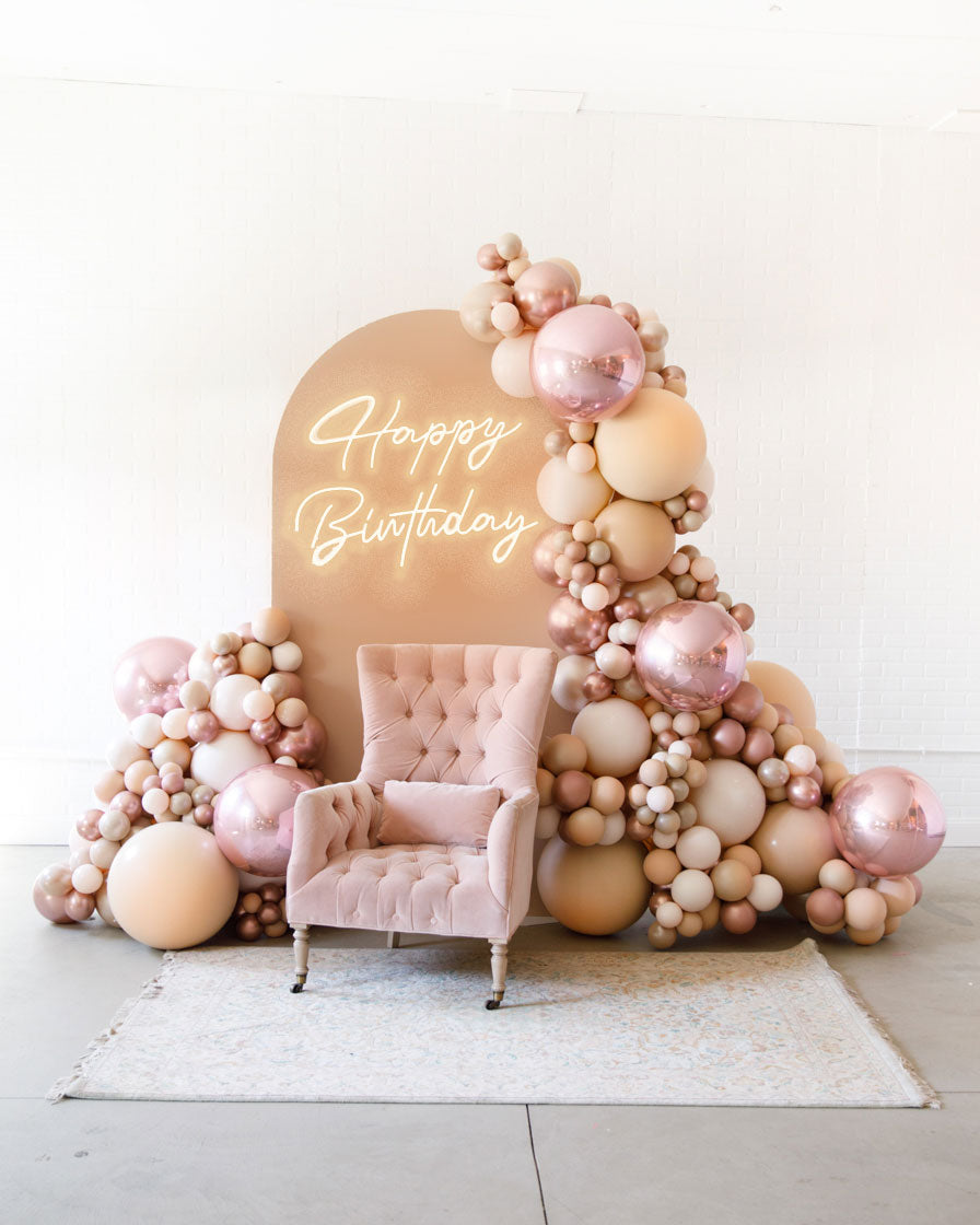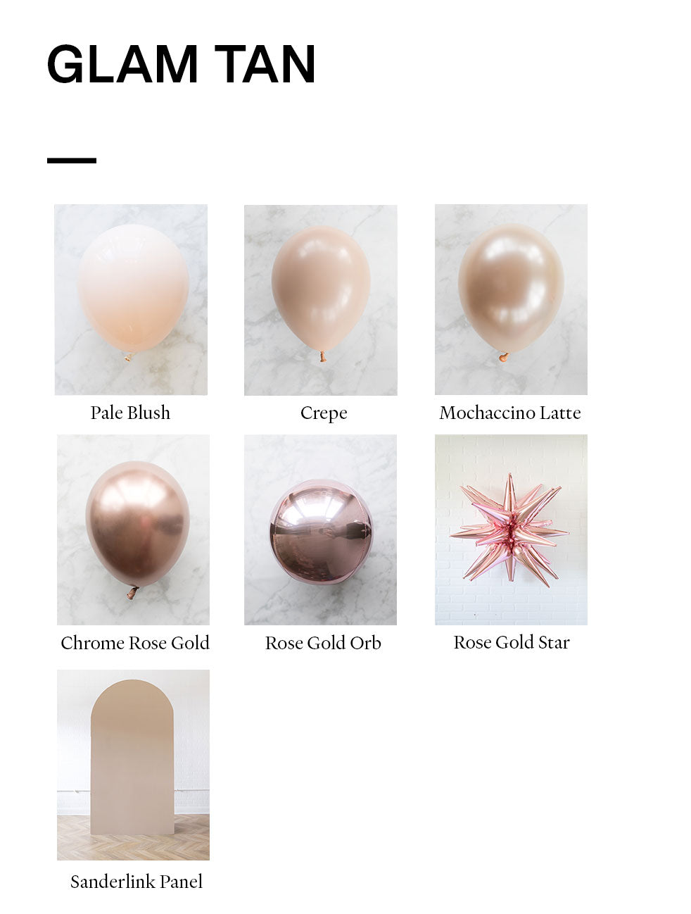 Balloon - light blush, crepe, mochaccino latte, chrome rose gold