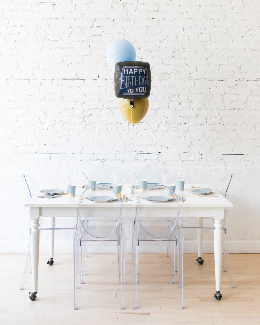 This balloon centerpiece adds a fun touch to your tablescape. Place on dinner table, dessert table, cocktail table or bar cart.
