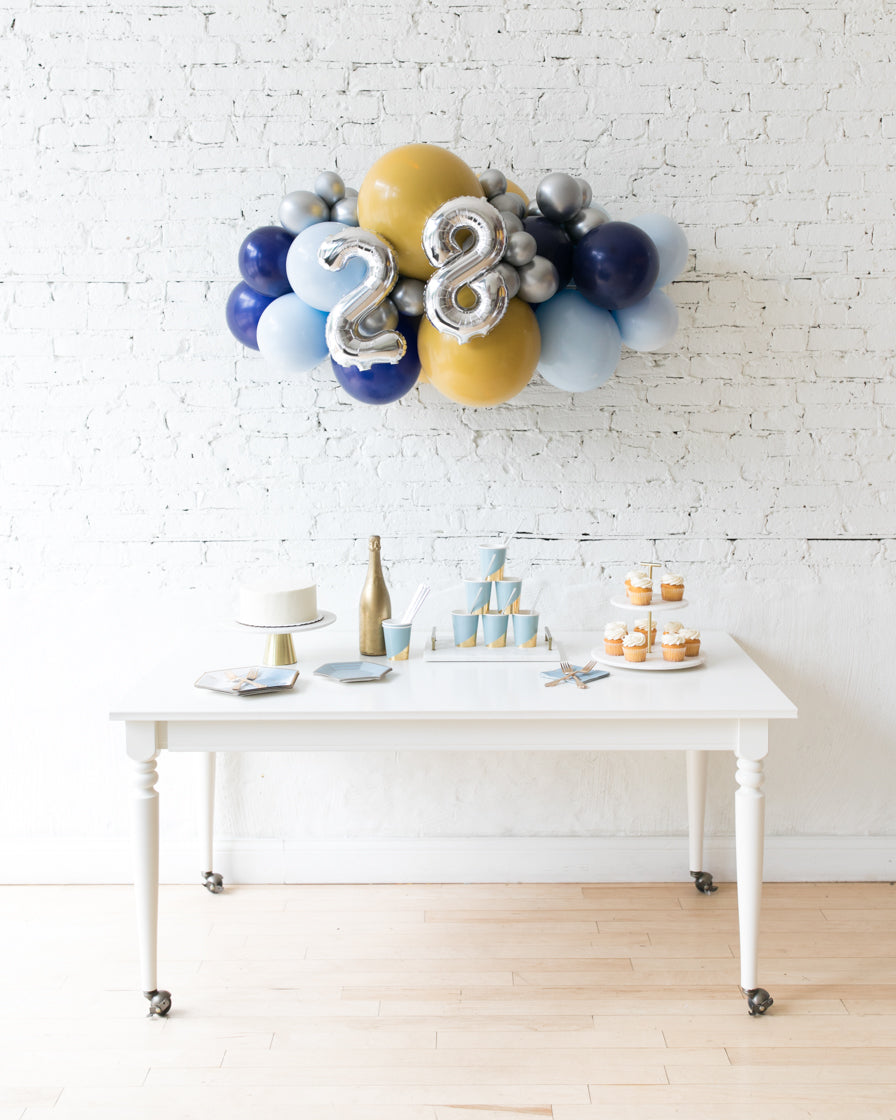 Spread some cheer with this eye-catching balloon garland. A great way to celebrate an important occasion, this piece can be installed above a sweets table or on a wall for a photo op. Complete the look with giant balloons or balloon columns from this same collection.
