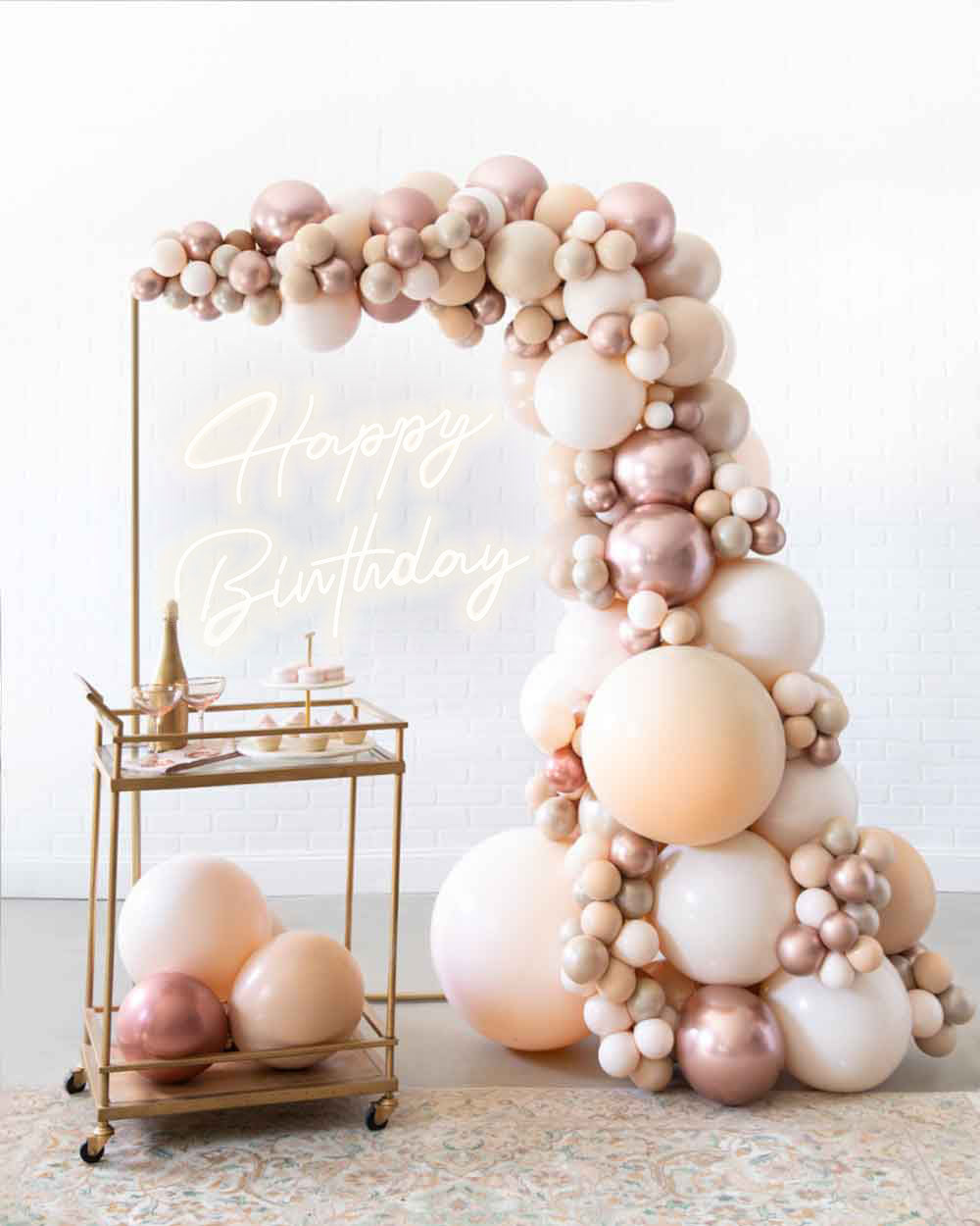 Light up your event with the ultimate backdrop! This balloon garland design includes balloons along a circular frame, as well as a beautiful neon sign to highlight your occasion in style! This works perfectly in any space and will wow your guests!