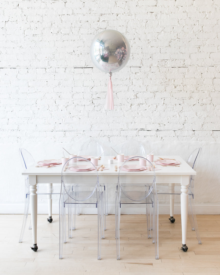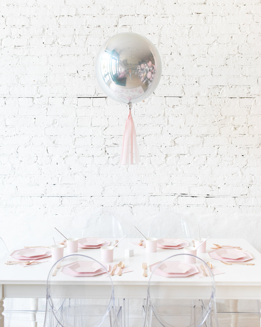 16in Silver Orb Foil Balloon with Pink Skirt Centerpiece