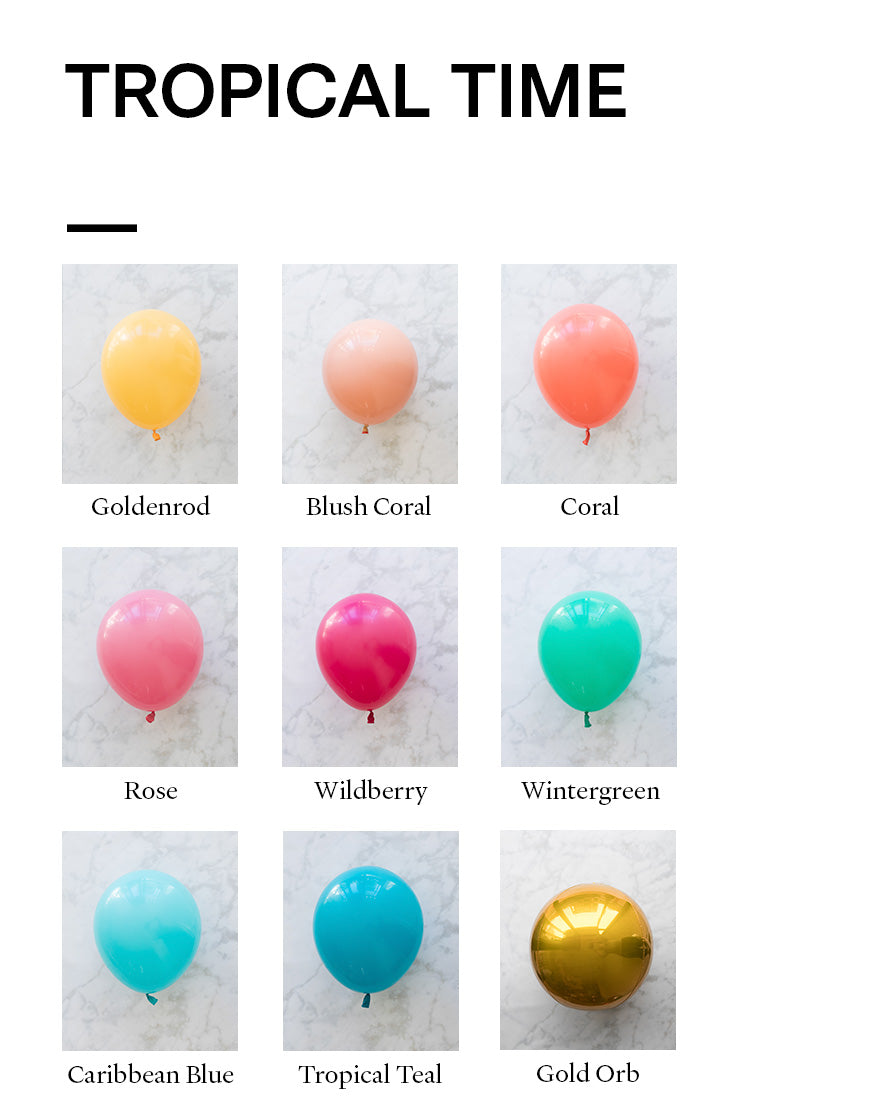 Balloon - goldenrod, blush coral, coral, rose, wildberry, wintergreen, caribbean blue, tropical teal