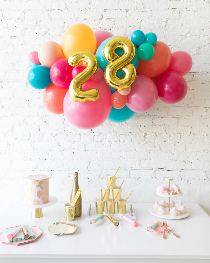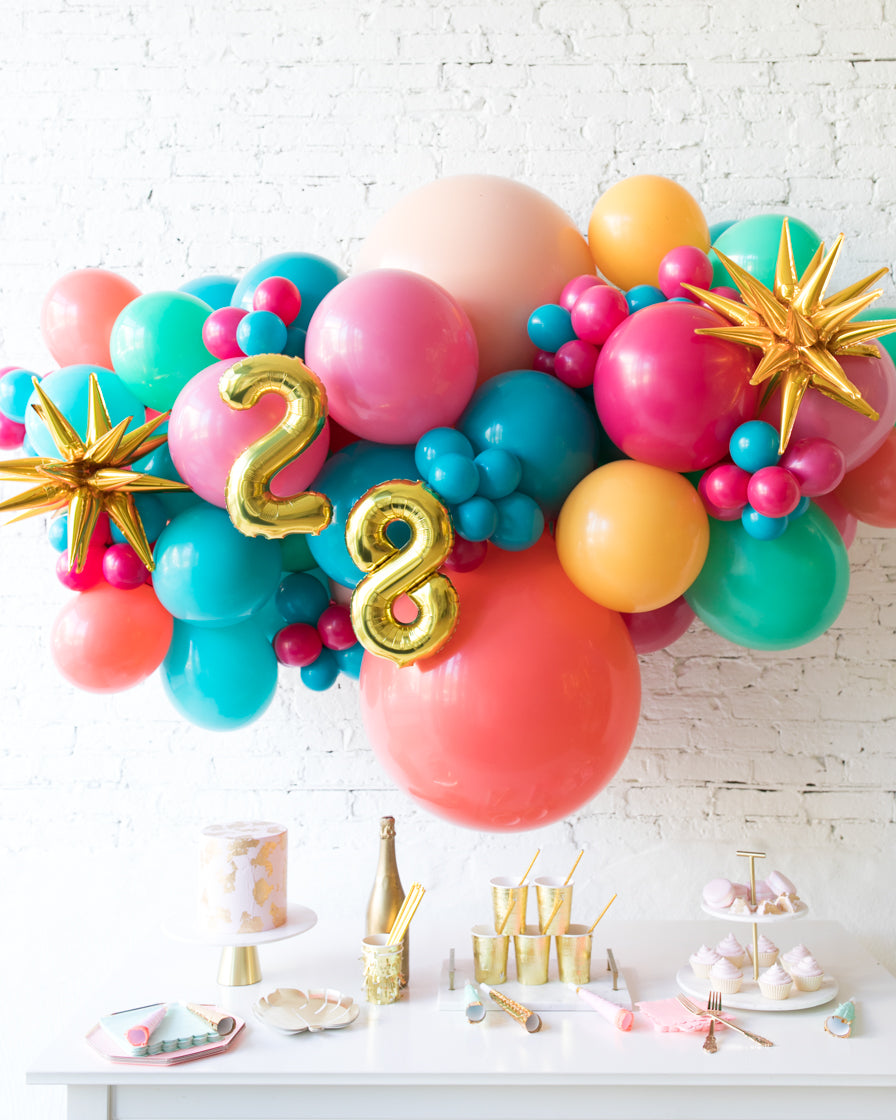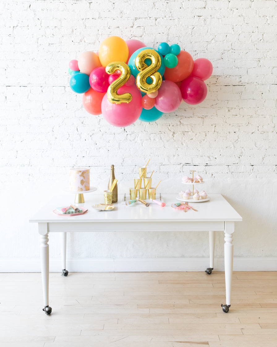 Spread some cheer with this eye-catching balloon garland. A great way to celebrate an important occasion, this piece can be installed above a sweets table or on a wall for a photo op. Complete the look with giant balloons or balloon columns from this same collection.