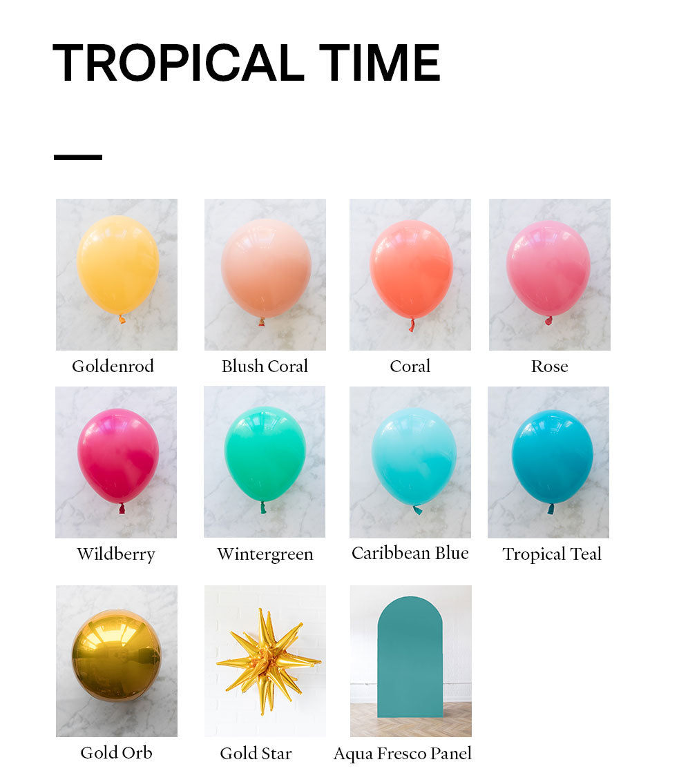 Balloon - goldenrod, blush coral, coral, rose, wildberry, wintergreen, caribbean blue, tropical teal