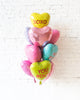 This colorful balloon bouquet features heart-shaped foil balloons in cheerful pastel tones, perfect for kids’ Valentine’s gifts, classroom celebrations, school parties, or a festive surprise at home.