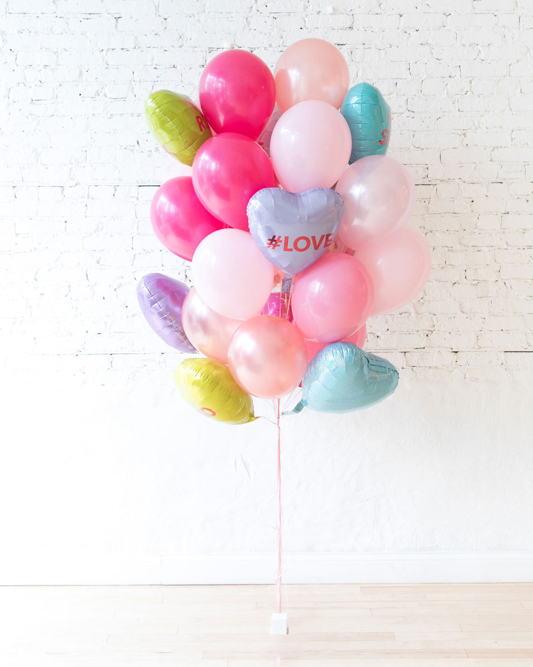 Our biggest balloon bouquet yet! A colorful mix of heart foil balloons and our most popular pink shade latex balloons, this show-stopping, head-turning gift is sure to make an impression that will last for days.