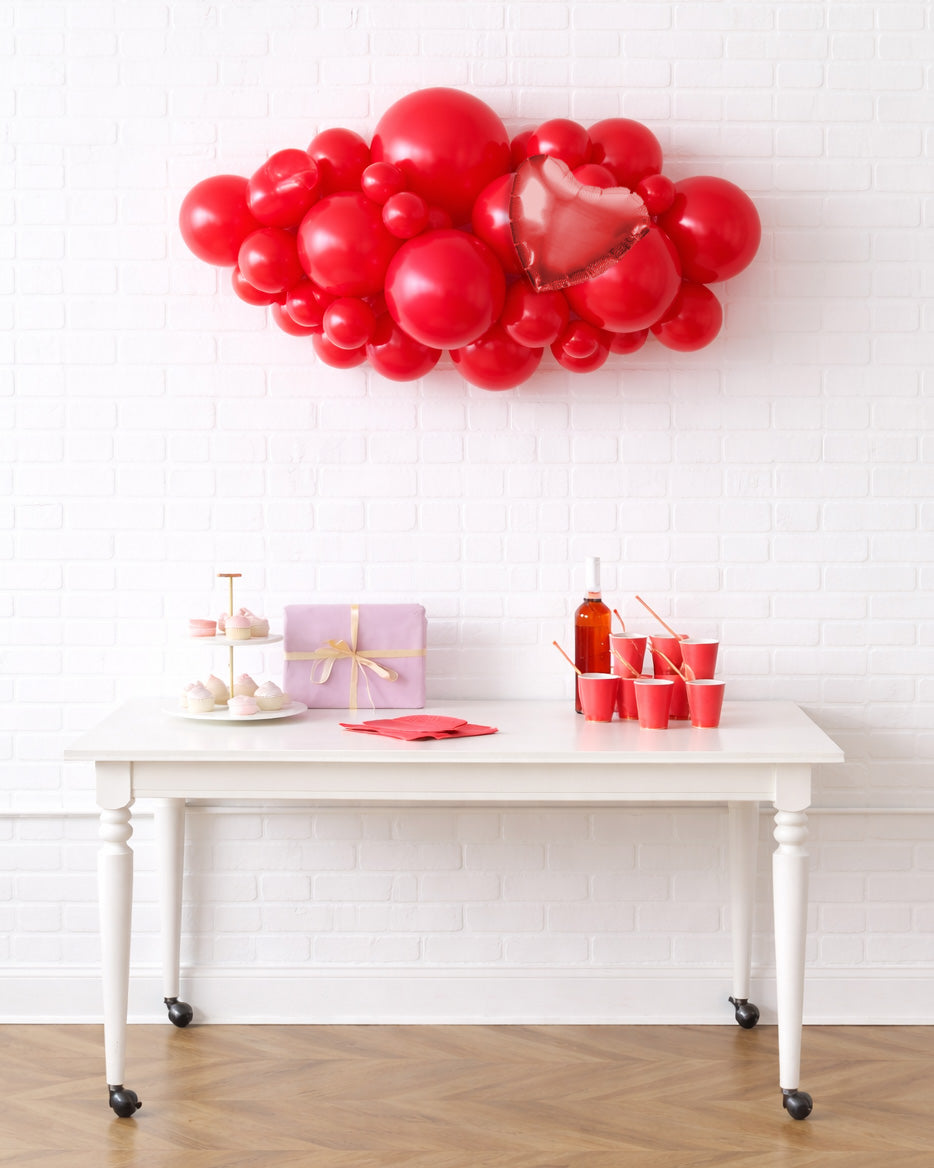 Spread the love with this statement-making Valentine’s Day balloon garland, designed to instantly elevate any setting. Featuring a lush, organic arrangement, this garland adds volume, texture, and impact—perfect for Valentine’s Day celebrations, proposals, anniversaries, or surprise moments.