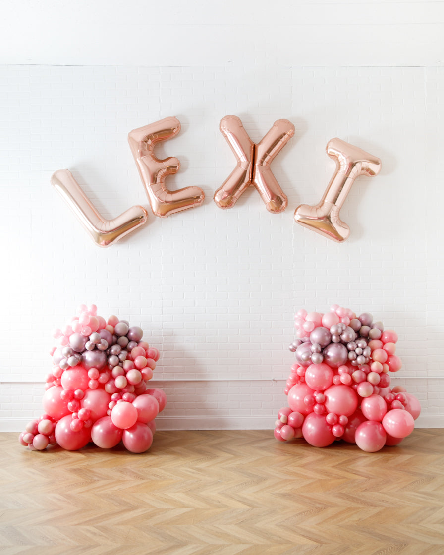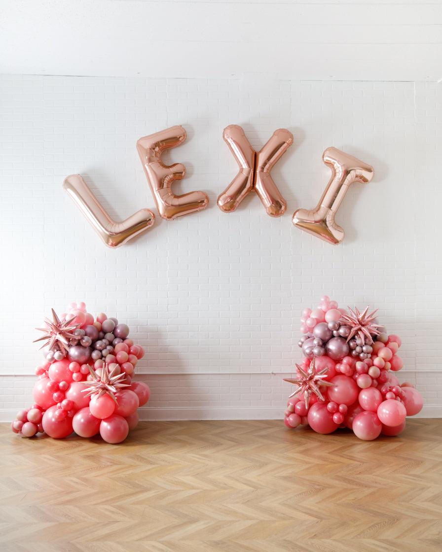 Set includes: foil letters, balloon columns