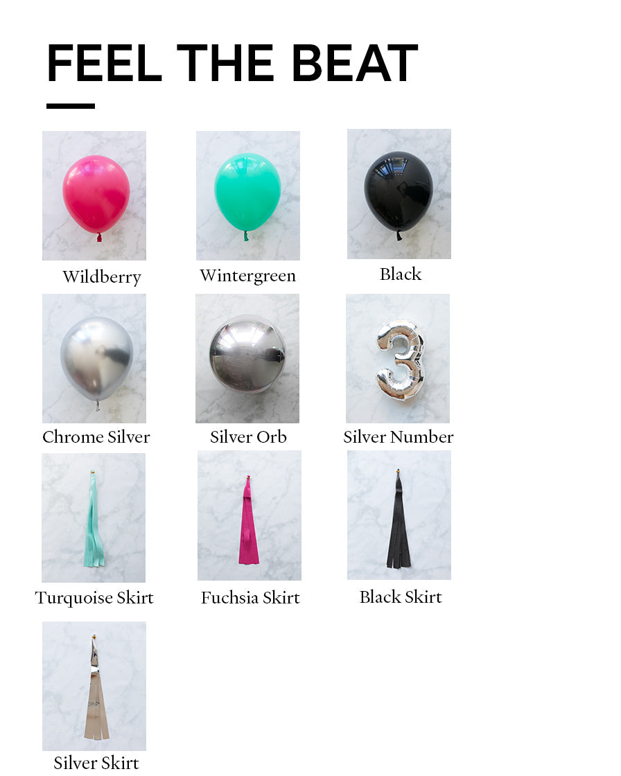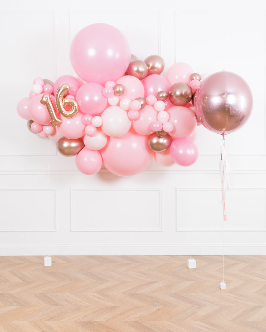 Fill the room with this bold birthday, Sweet 16 or Quinceañera balloon set! This includes a balloon wall with foil number and giant foil orb balloon to create and instant backdrop.