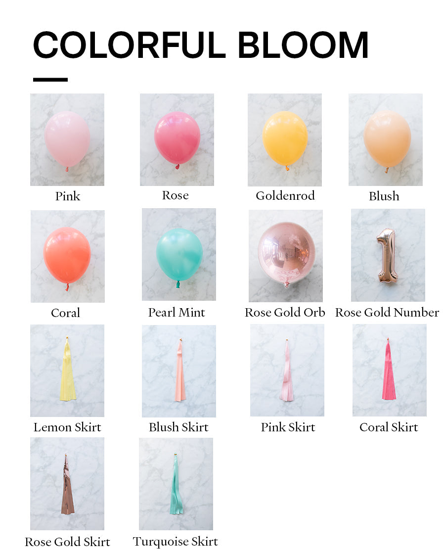 Balloon - pink, rose, goldenrod, blush, coral, pearl mint