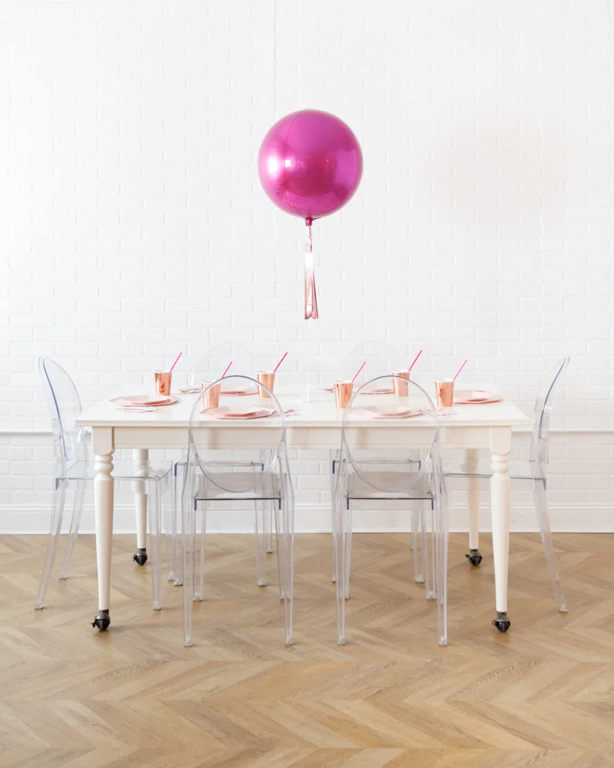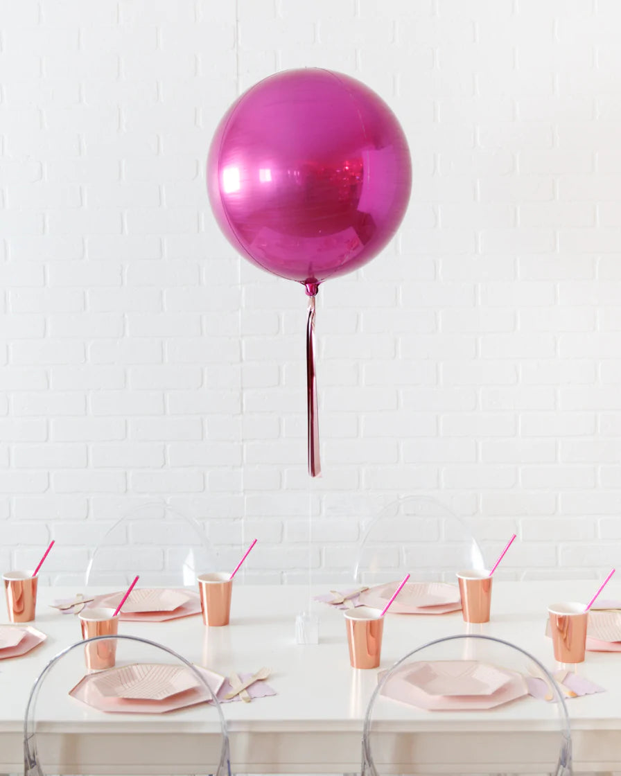 Bring your table to life with our silver orb with red skirt! Add this to your table for a sweet pop of color for a teen's themed birthday! Also, a great choice for a sweets table and favor's cart.