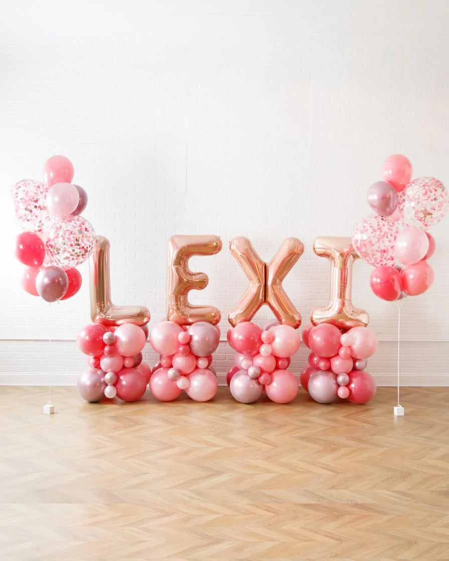 Celebrate them boldly with our name pedestal and confetti bouquet set! This includes two confetti bouquets and a custom name balloon pedestal in Clueless inspired shades. Use this as at your entry, sweets table or for photos at your teen's birthday.