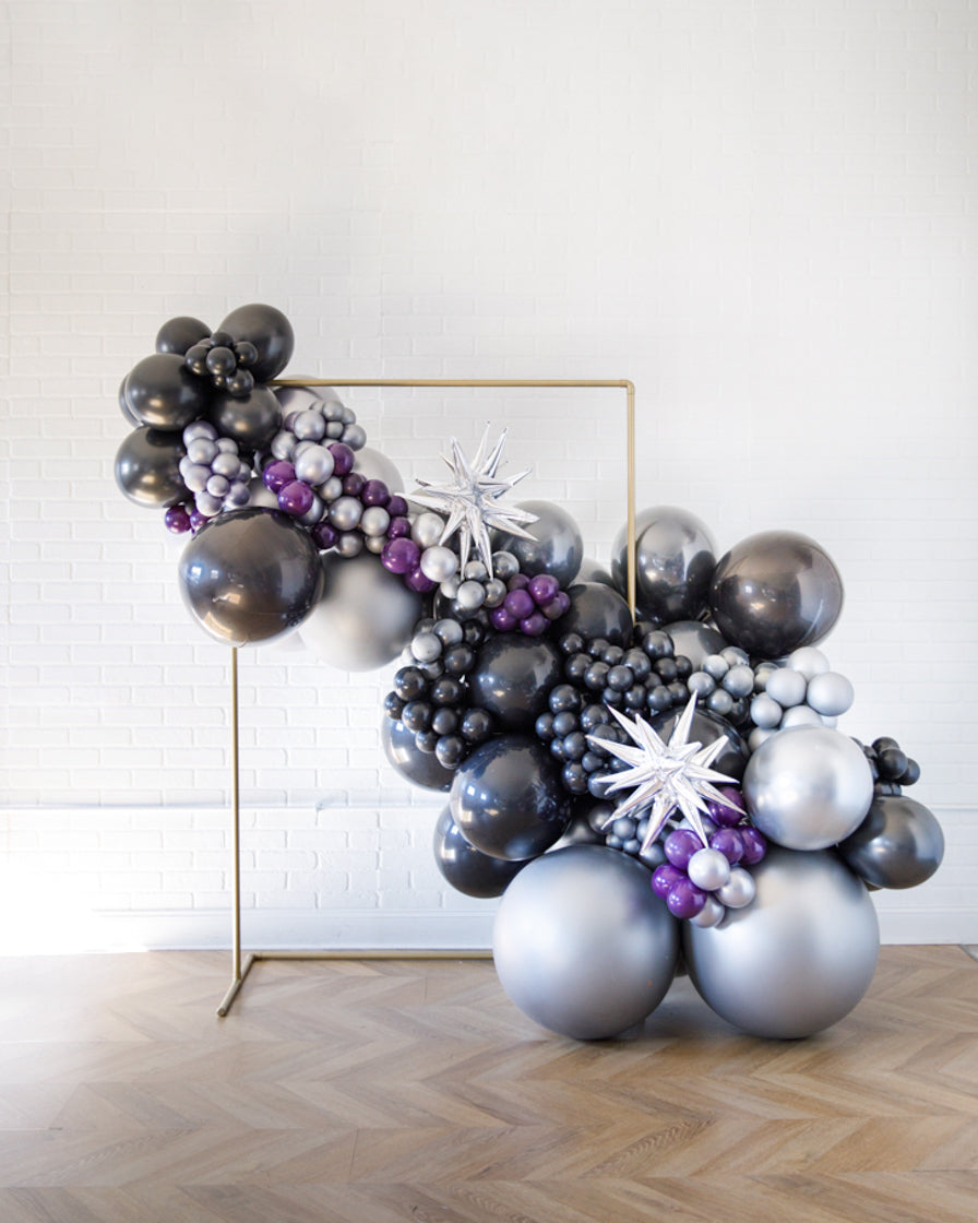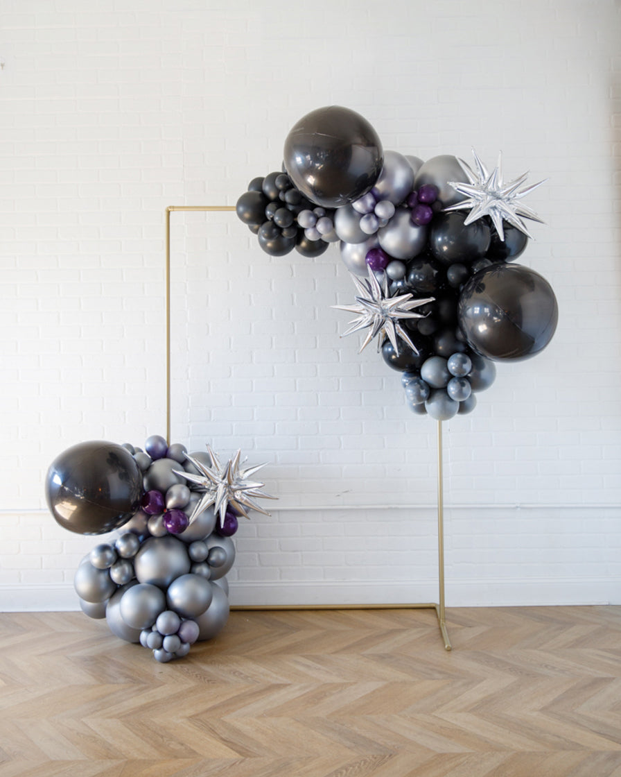 Instantly transform your event with our small frame and balloon garland design! This organic garland drapes around our signature gold frame for a one of a kind look! Bring even more glam to the look with foil accents.