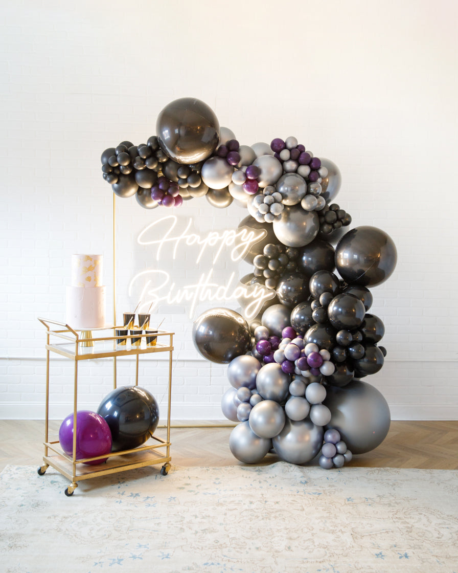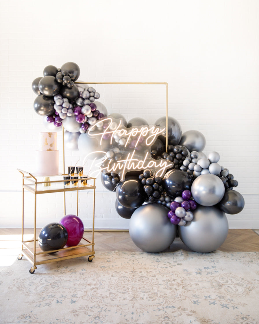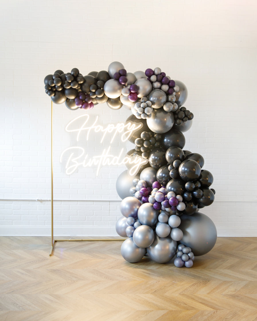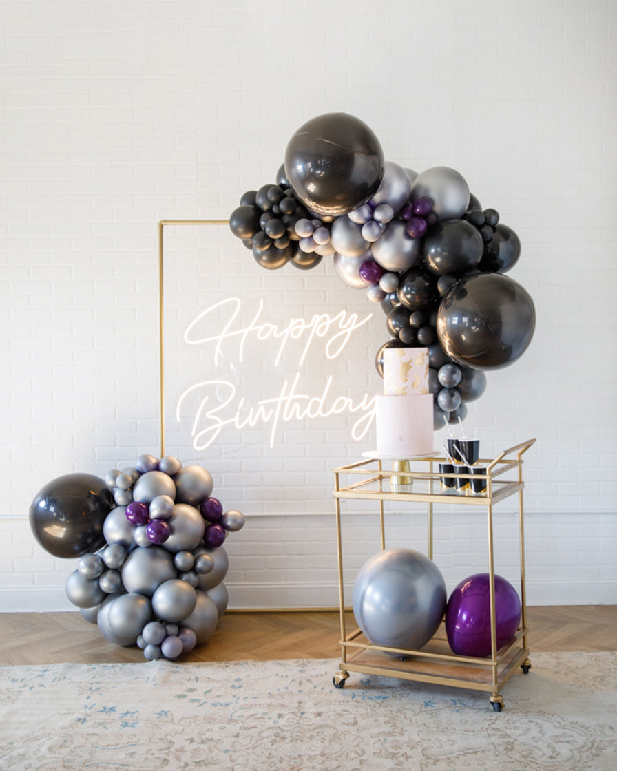 Light up your event with this neon sign, frame and balloon garland set! This picture perfect backdrop includes our neon sign, and an overflowing balloon garland draped around our small gold frame that creates a beautiful backdrop.