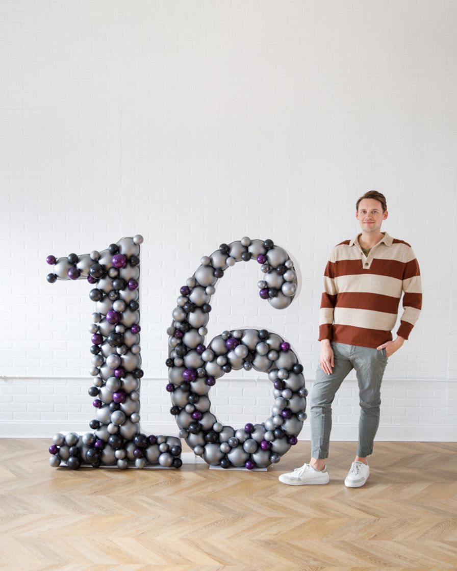 An eye-catching balloon piece fit for an outdoor event. These balloon mosaic numbers with bold colored balloons, perfect for a backdrop, sweets table and more! Complete the look with balloons from this collection.
