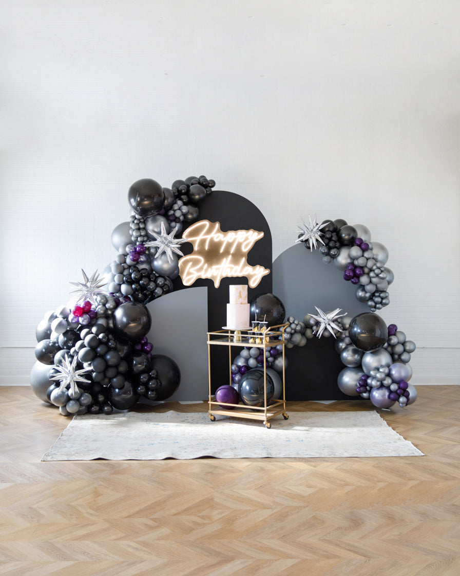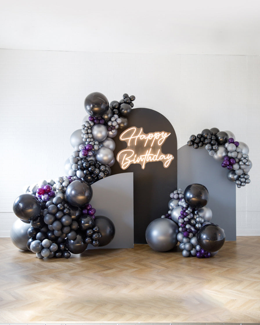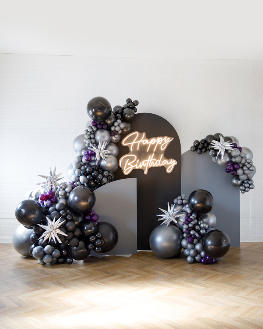 Stand out in style with this panel and balloon garland design. This includes a 2 panel backdrops and with organic balloon garlands to match. Add foil accents to make your photo backdrop stand out even more!