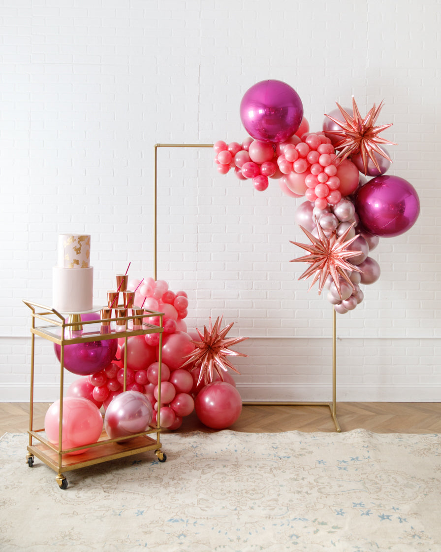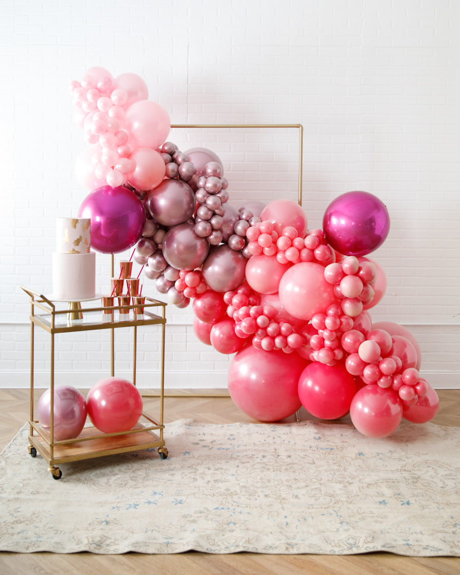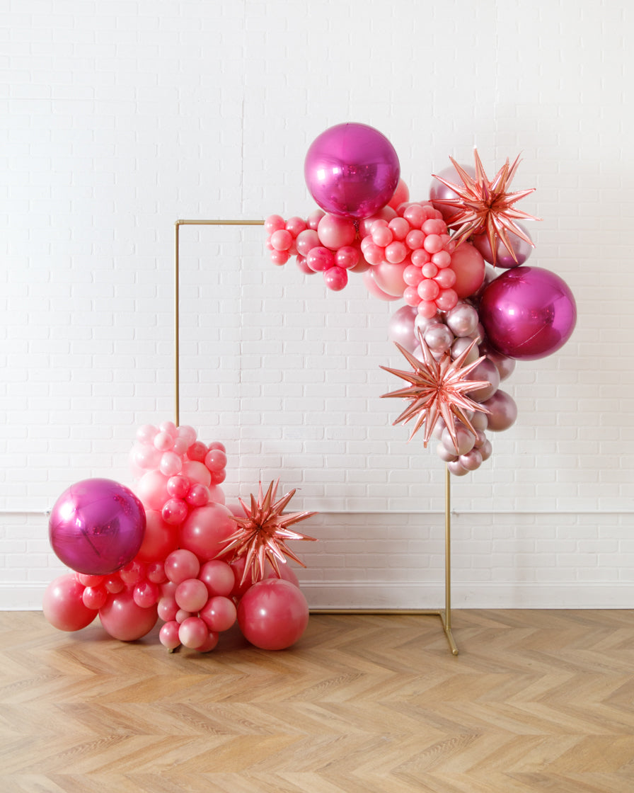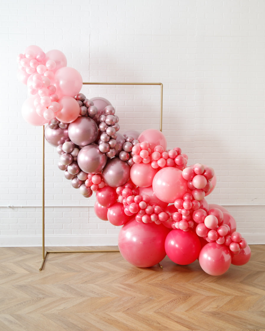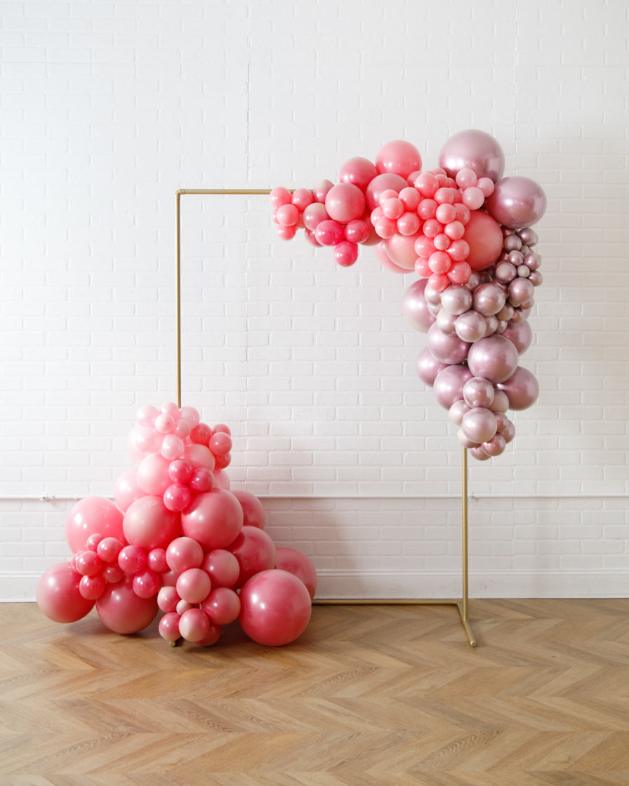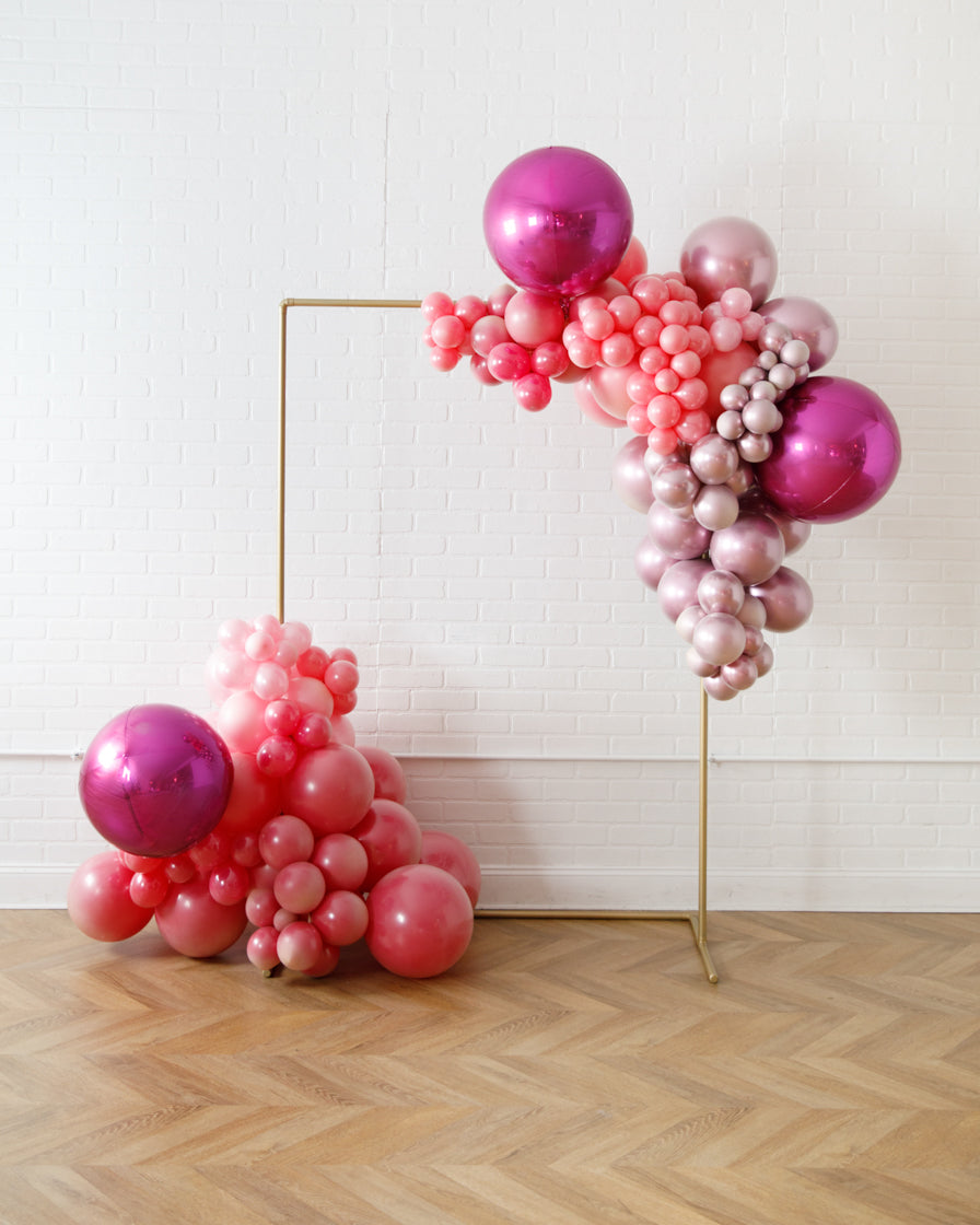 Instantly transform your event with our small frame and balloon garland design! This organic garland drapes around our signature gold frame for a one of a kind look! Bring even more glam to the look with foil accents.