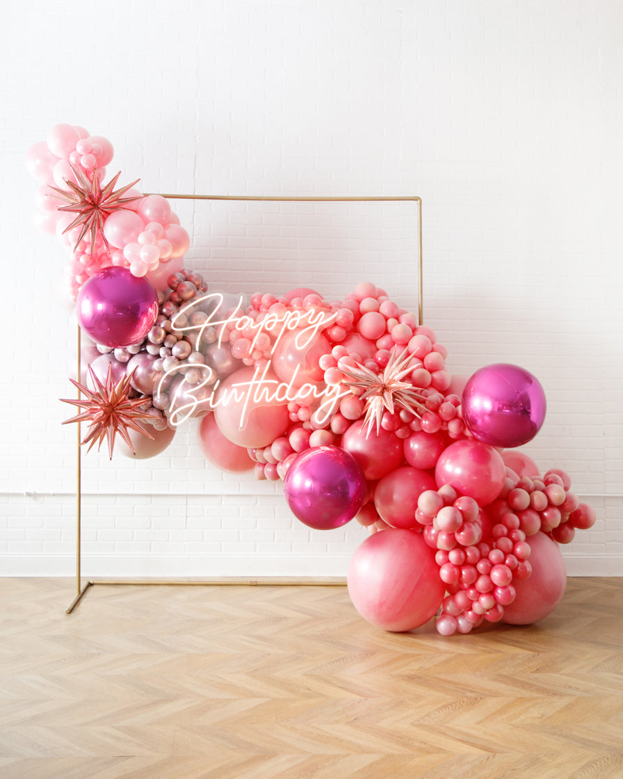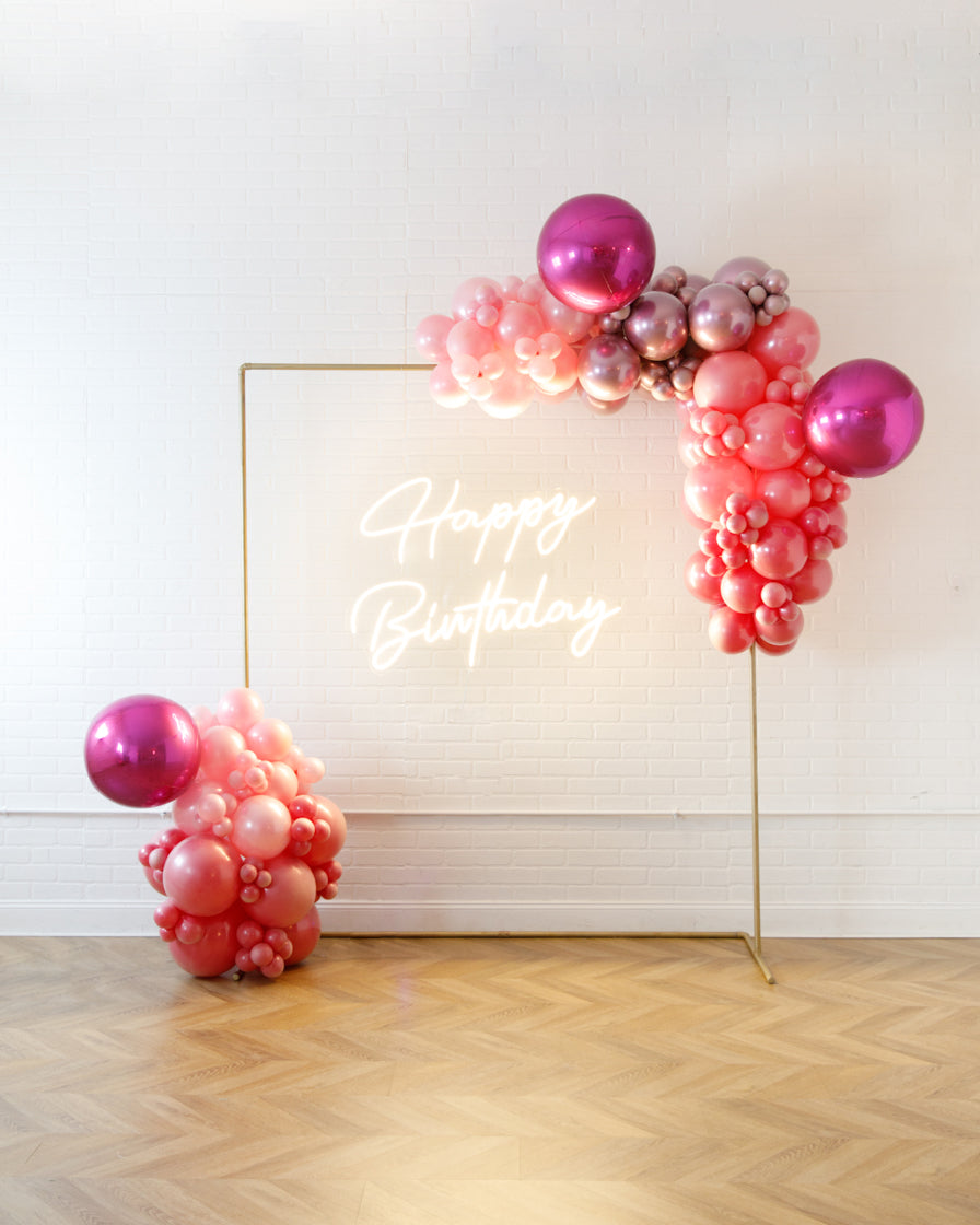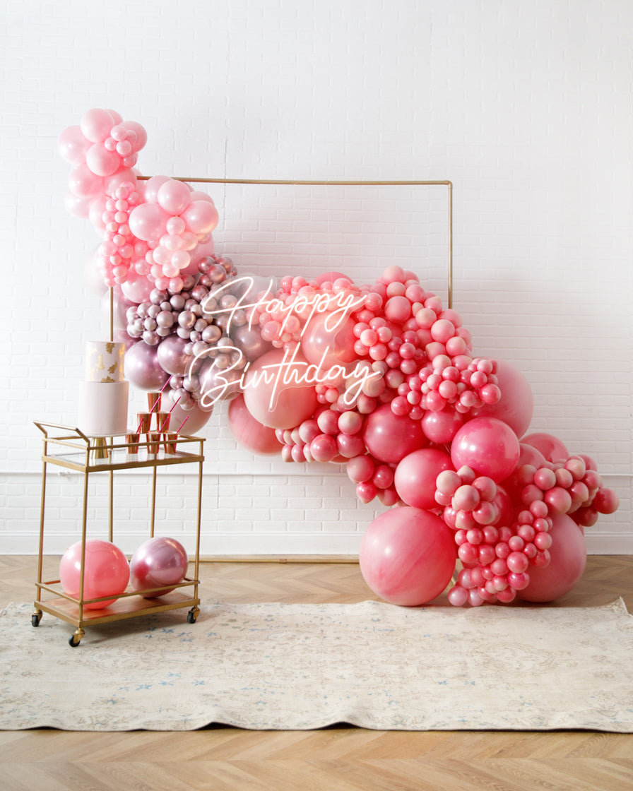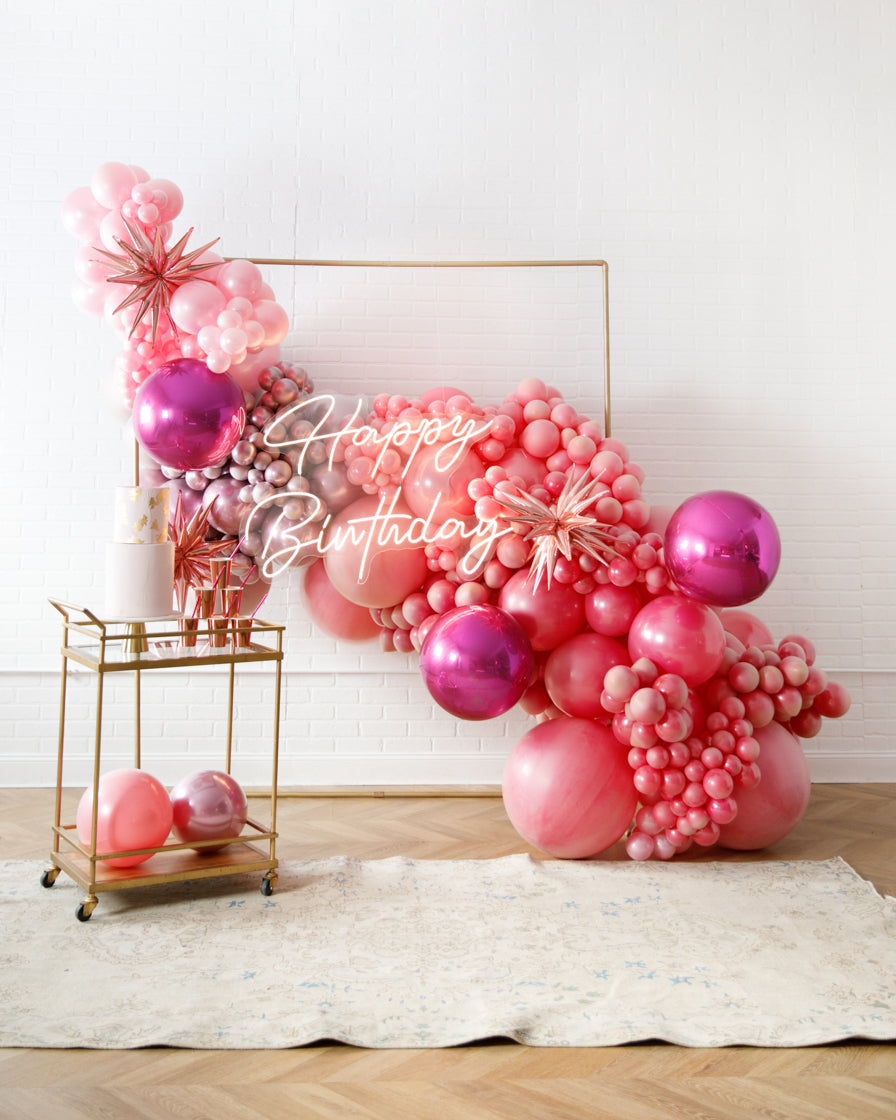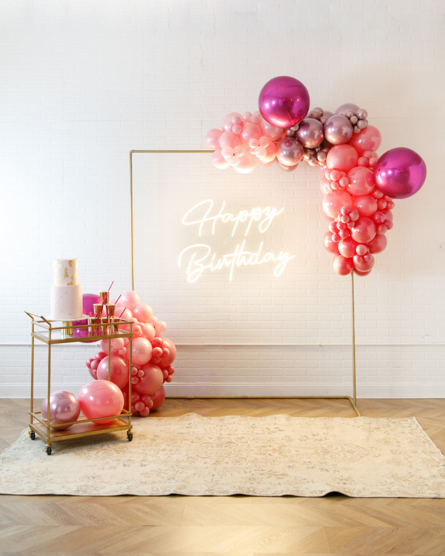 Really take your celebration to the next level with our garland frame and neon set. With our bright Happy Birthday neon and organic garland, you'll get plenty of photo-ops your guests will love.