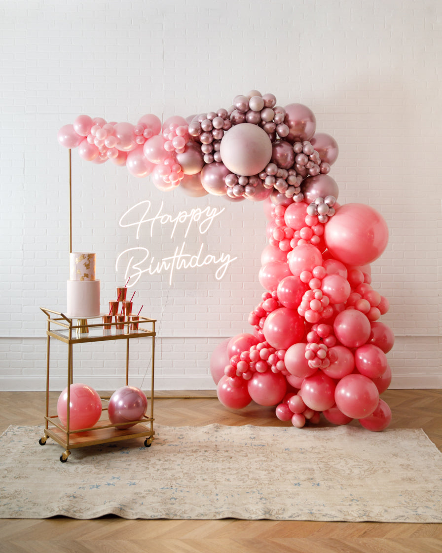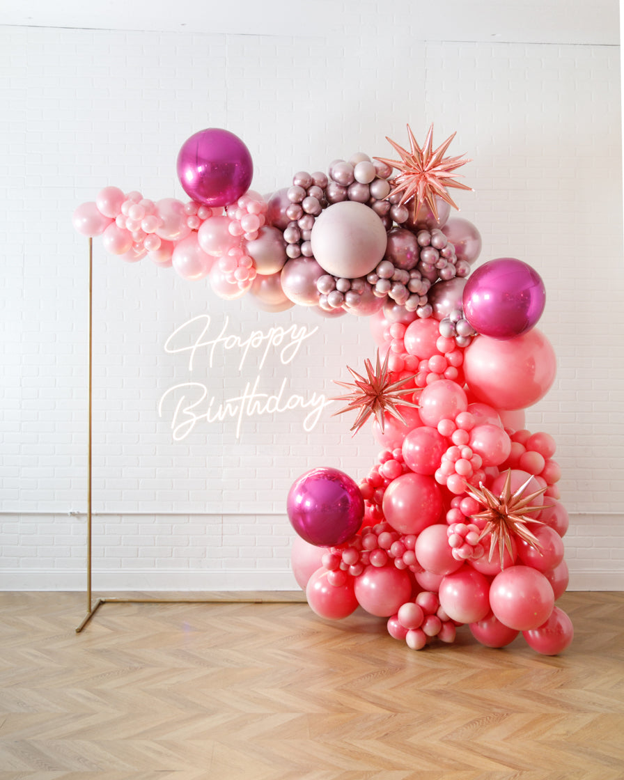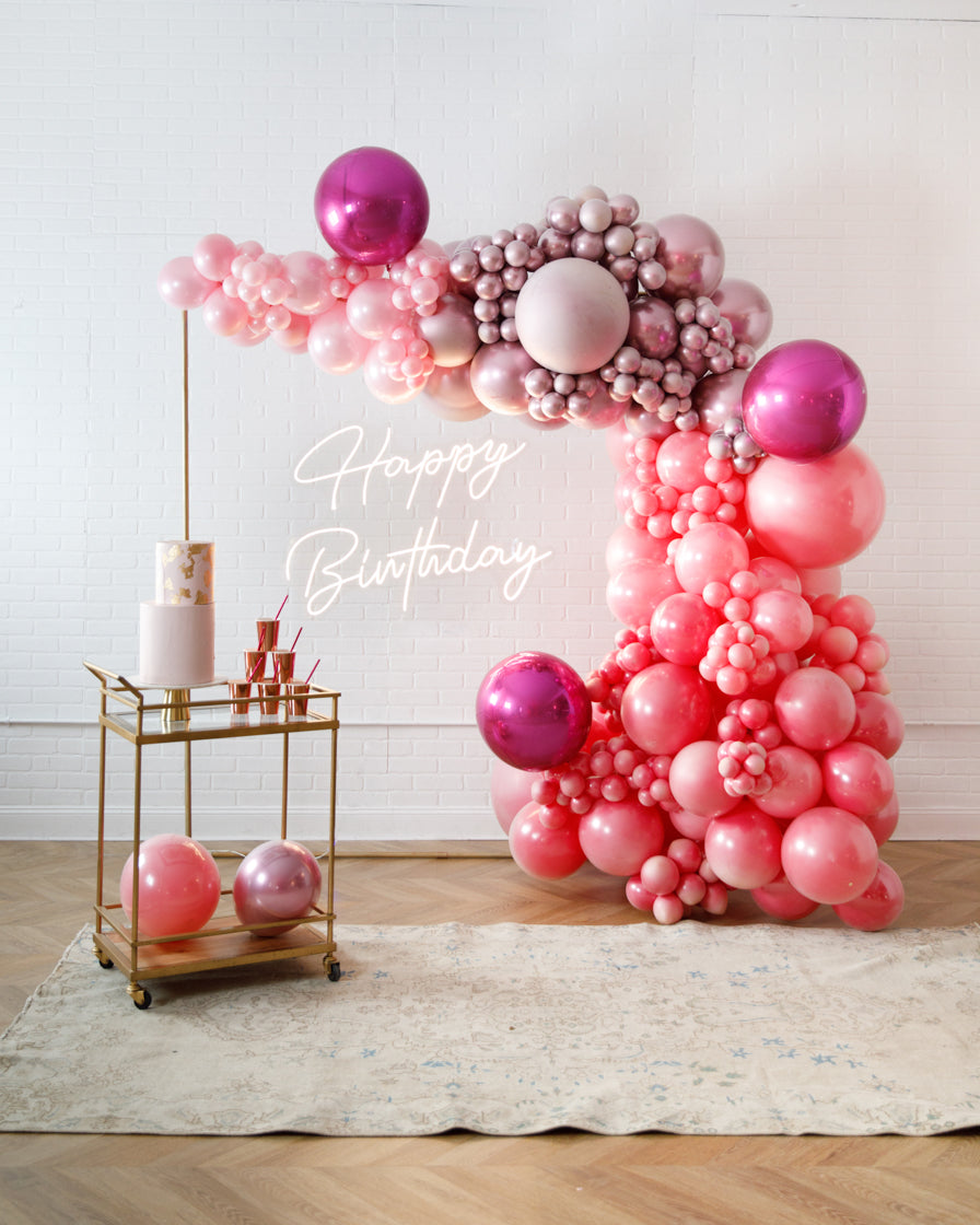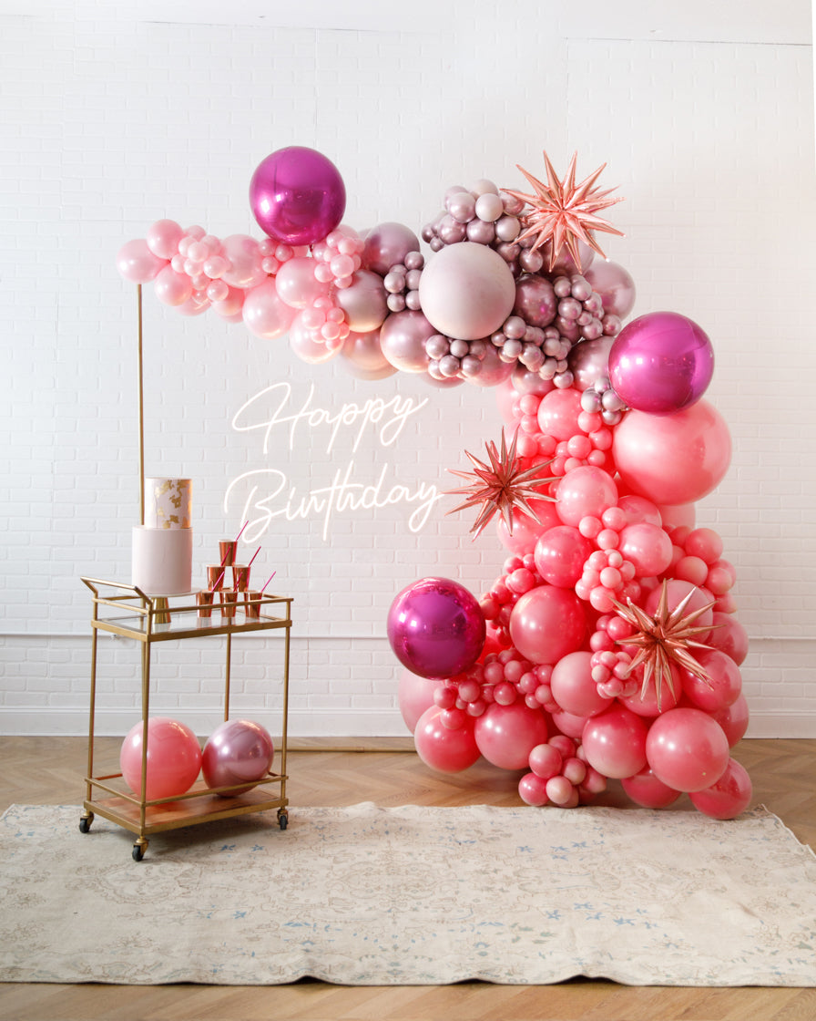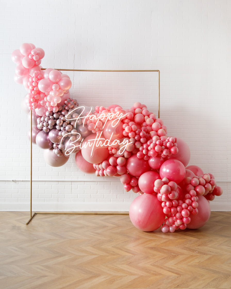 Really take your celebration to the next level with our garland frame and neon set. With our bright Happy Birthday neon and organic garland, you'll get plenty of photo-ops your guests will love.