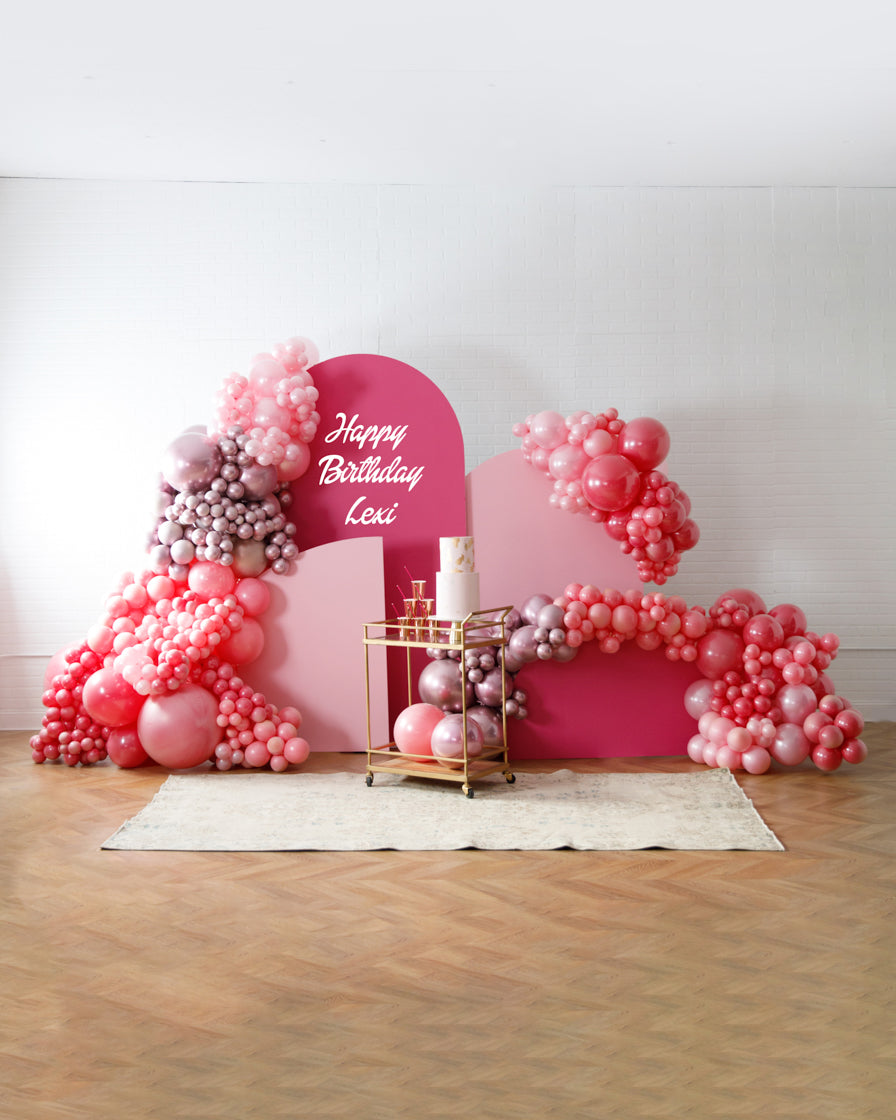 Stand out in style with this panel and balloon garland design. This includes a 2 panel backdrops and with organic balloon garlands to match. Add foil accents to make your photo backdrop stand out even more!