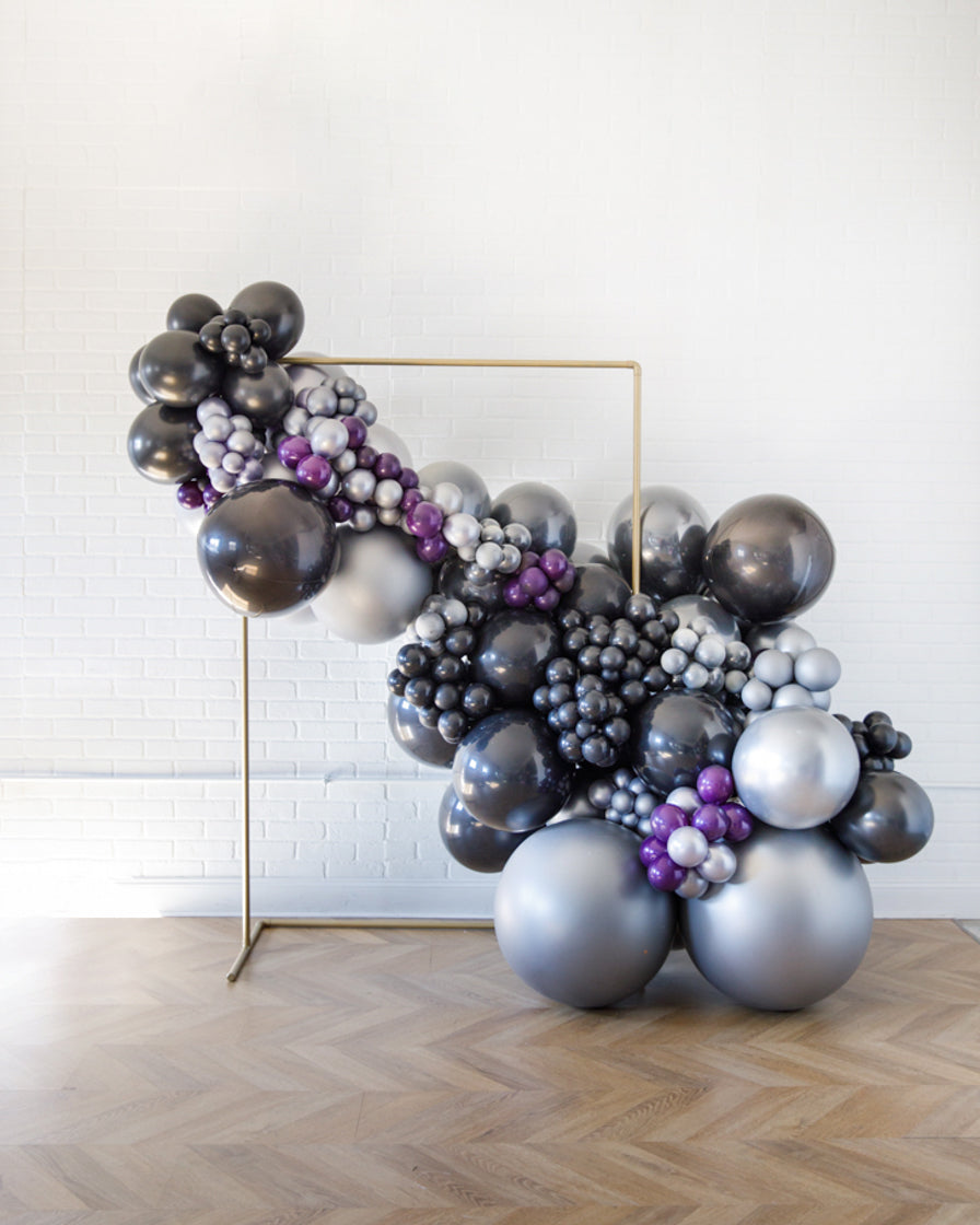 Instantly transform your event with our small frame and balloon garland design! This organic garland drapes around our signature gold frame for a one of a kind look! Bring even more glam to the look with foil accents.